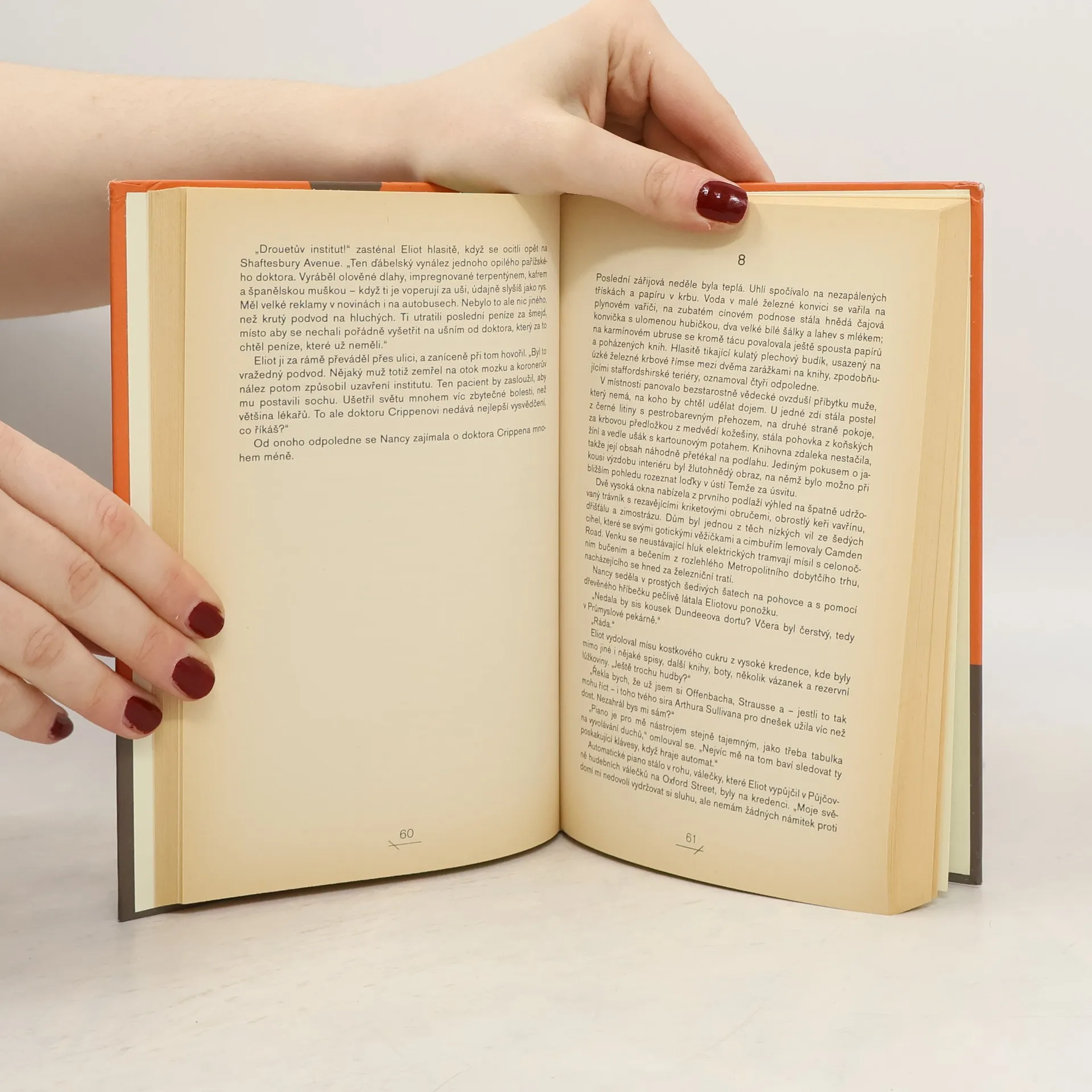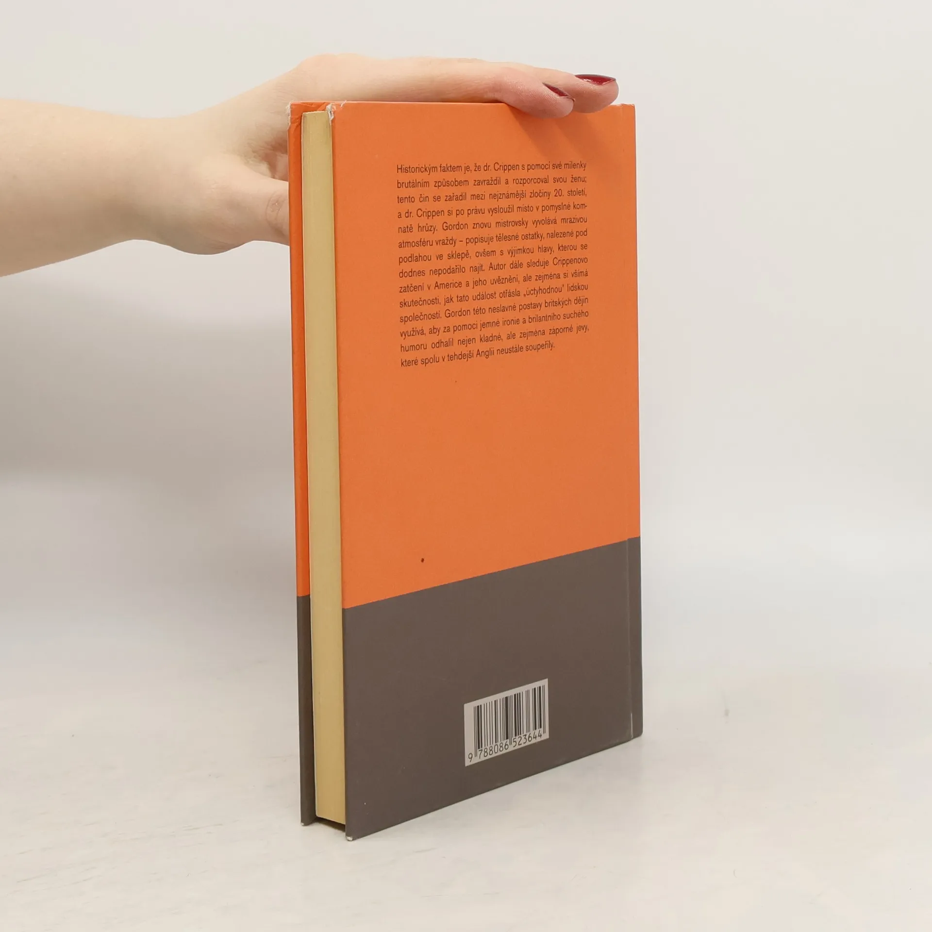 Román známého anglického spisovatele líčí autentický případ z počátku 20. století, kdy v Londýně americký lékař dr. Hawley H. Crippen s pomocí své milenky brutálně zavraždil svou ženu. Tehdejší událost otřásla celou anglickou společností. Brutálního vraha se podařilo chytit v Americe, kam se po svém činu ukryl i s milenkou. Nikdy se však nenašla hlava oběti a také vina dr. Crippena nebyla podle některých svědků stoprocentně prokázána. Autor popisuje život dr. Crippena ještě před osudnou vraždou, sleduje jeho zatčení v Americe, ale především si všímá skutečnosti, jak tento čin otřásl soudobou společností.