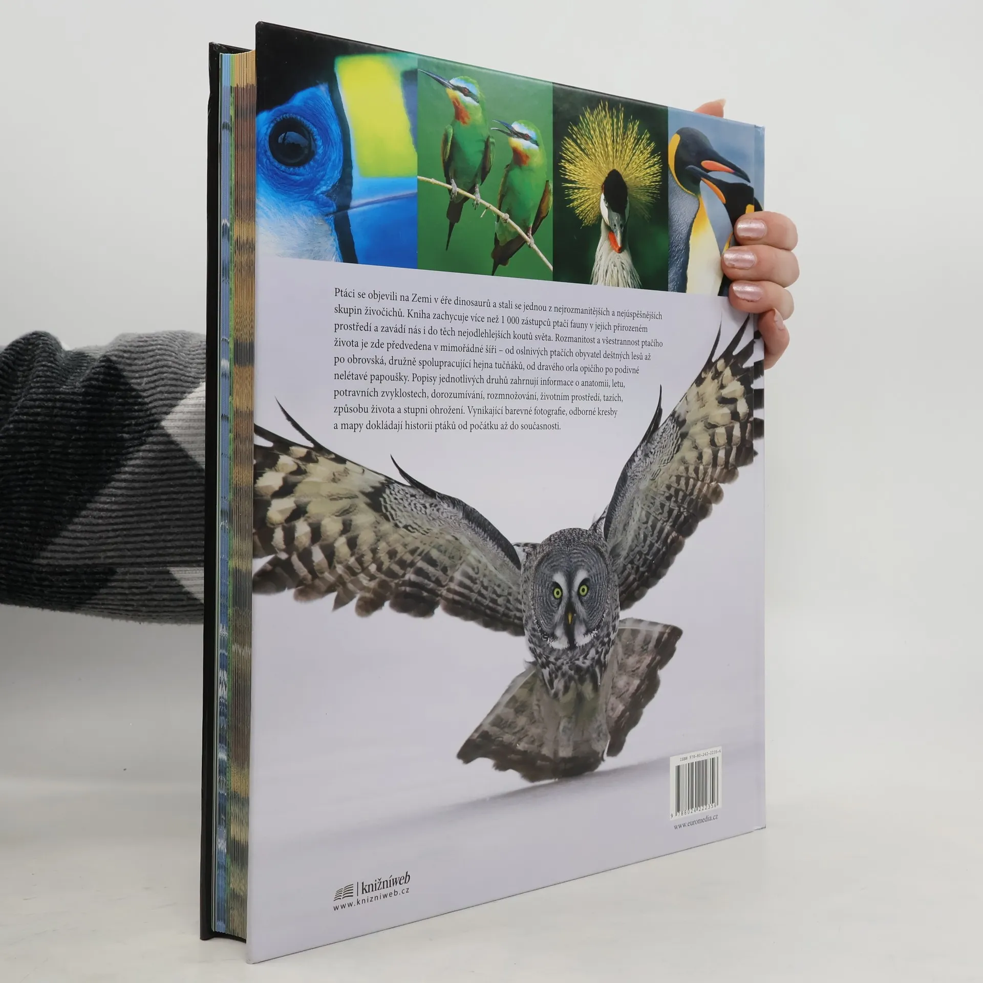 Ptáci Obrazová encyklopedie ptáků celého světa Ptáci se objevili na Zemi v éře dinosaurů a stali se jednou z nejrozmanitějších, nejbarvitějších a nejúspěšnějších skupin živočichů. Jejich vzhled, chování a mistrovství v letu z nich činí nesmírně poutavý námět pozorování pro miliony lidí. V knize je představeno více než 1 000 druhů ptáků - od oslnivých ptačích obyvatel deštných lesů až po obrovská, družně spolupracující hejna tučňáků, od dravého orla opičího po podivné nelétavé papoušky. V mimořádné šíři je tak předvedena rozmanitost a všestrannost jejich života. Nové údaje o rozšíření jednotlivých druhů ptáků a o stupni jejich ohrožení jsou garantovány organizací Birdlife International, vůdčí světovou autoritou zabývající se stavem ptačích populací na naší planetě. Na vzniku díla se podílela také společnost Audubon, nejvýznamnější světová organizace věnující se ochraně ptáků. Vynikající barevné fotografie jsou tím správným pomocníkem pro poznávání ptáků v přírodě, kresby a mapy dokládají historii ptáků od jejího počátku až do současnosti a názorně vypovídají o jejich anatomii, letu, potravních zvyklostech, dorozumívání, rozmnožování a péči o mláďata, životním prostředí, tazích a způsobu života. Kniha je nejen neocenitelným zdrojem poznatků, ale i mimořádným estetickým zážitkem.