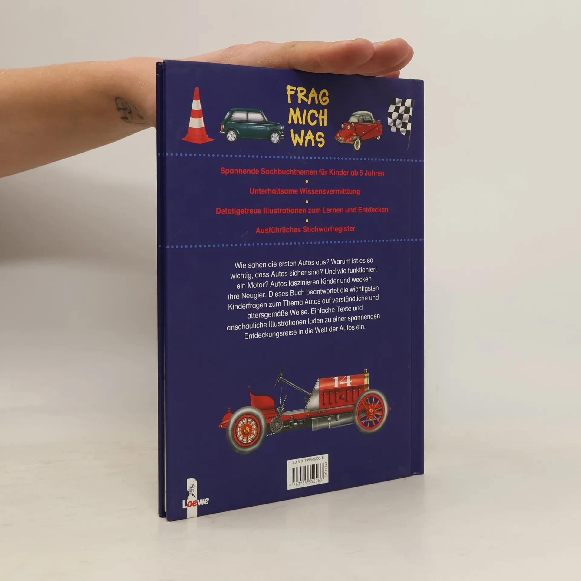 Spannende Sachbuchthemen für Kinder ab 5 Jahren Unterhaltsame Wissensvermittlung Detailgetreue Illustrationen zum Lernen und Entdecken Ausführliches Stichwortregister Wie sahen die ersten Autos aus? Warum ist es so wichtig, dass Autos sicher sind? Und wie funktioniert ein Motor? Autos faszinieren kinder und wecken ihre Neugier. Dieses Buch beantwortet die wichtigsten Kinderfragen zum Thema Autos auf verständliche und altersgemäße Weise. Einfache Texte und anschauliche Illustrationen laden zu einer spannenden Entdeckungsreise in die Welt der Autos ein.