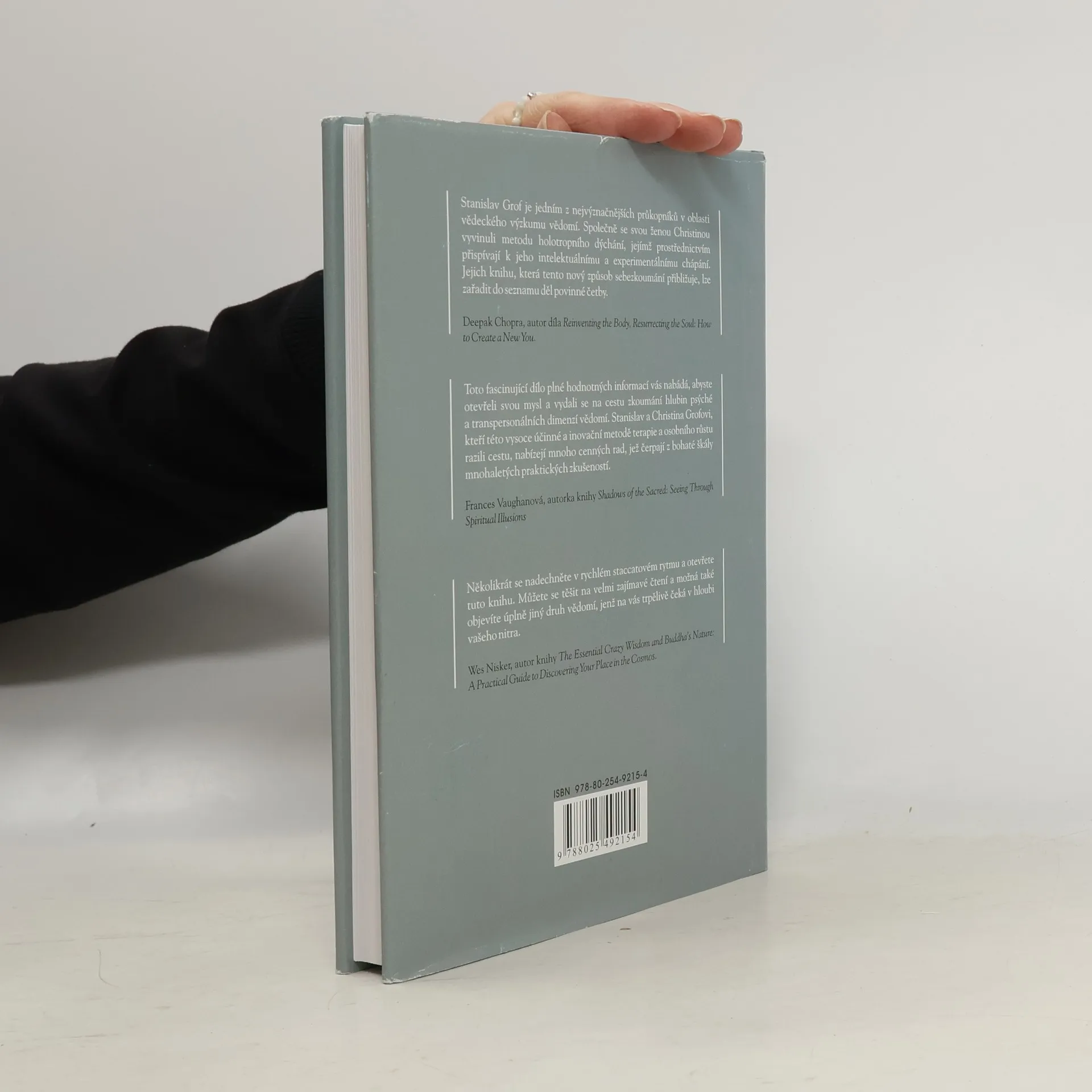 Stanislav a Christina Grofovi v této již dlouho očekávané knize podrobně popisují svoji metodu holotropního dýchání, která představuje zásadní průlom v oblasti psychoterapie a sebezkoumání. Výraz holotropní doslovně znamená „směřující k celistvosti“ (z řeckého holos – celek a trepein – pohybovat se směrem k něčemu). Holotropní dýchání ve své praxi využívá pozoruhodně léčivého a transformačního potenciálu změněných stavů vědomí, jež vyvolávají širokou škálu prožitků, která skýtá jedinečné terapeutické možnosti v podobě znovuprožití vzpomínek z dětství, novorozeneckého období, jednotlivých fází porodu a prenatálního života a také různé prvky z historických a archetypálních oblastí kolektivního nevědomí. Kombinací zdánlivě jednoduchých prostředků realizovaných v bezpečném a podpůrném prostředí, konkrétně zrychleného dechu, evokativní hudby a cílené práce s tělem, v sobě holotropní dýchání integruje vhledy získané z hlubinné psychologie, moderního výzkumu vědomí, transpersonální psychologie, antropologie, východních duchovních nauk a mystických tradic celého světa. Dlouholetá práce manželů Grofových v oblasti výzkumu a praktického využití holotropních stavů vědomí přináší revoluční změny do teorie i praxe moderní psychiatrie, psychologie a psychoterapie. Právě v tomto nedocenitelném díle, které je zpracováno naprosto jasným a srozumitelným způsobem, shrnují manželé Grofovi své fascinující objevy a vhledy.