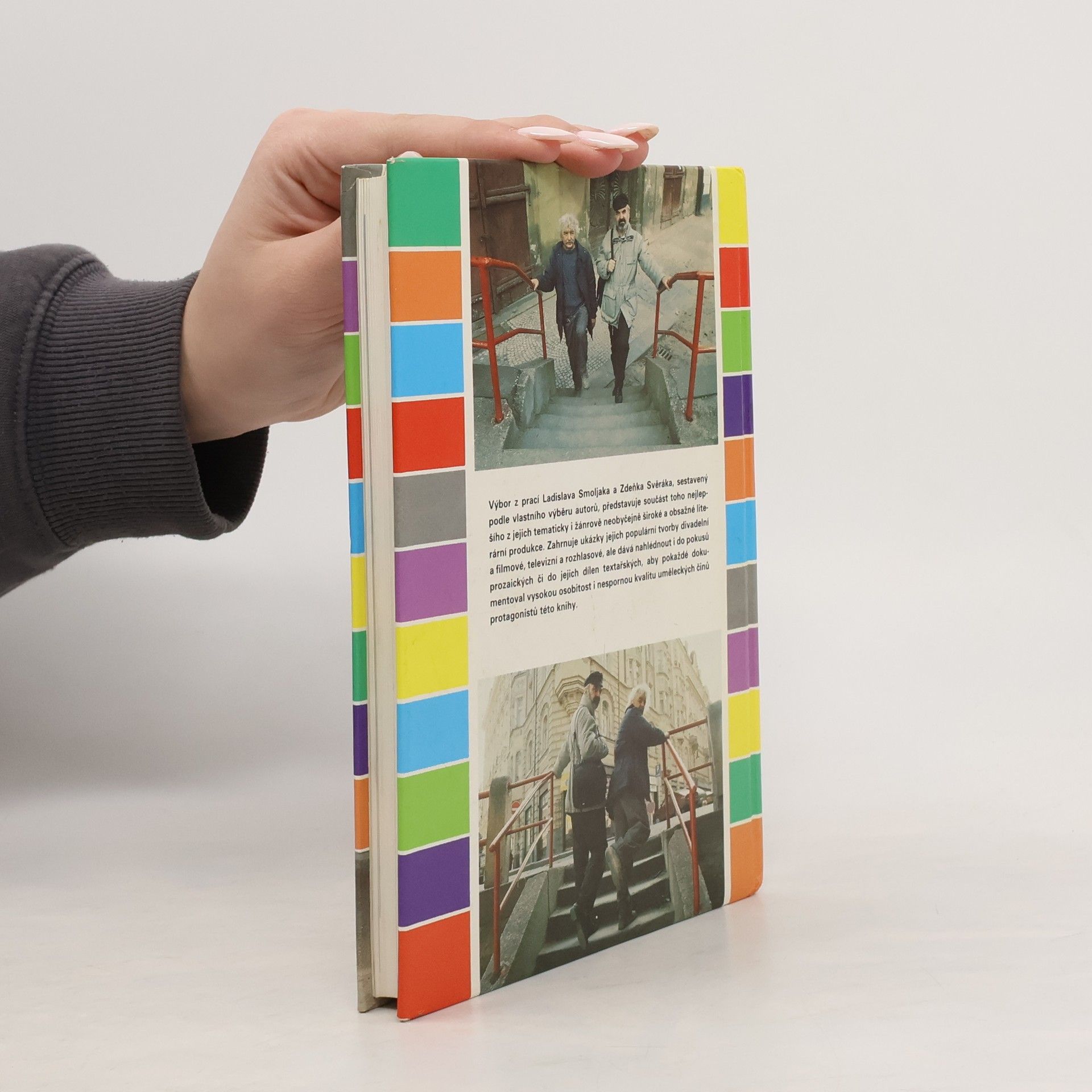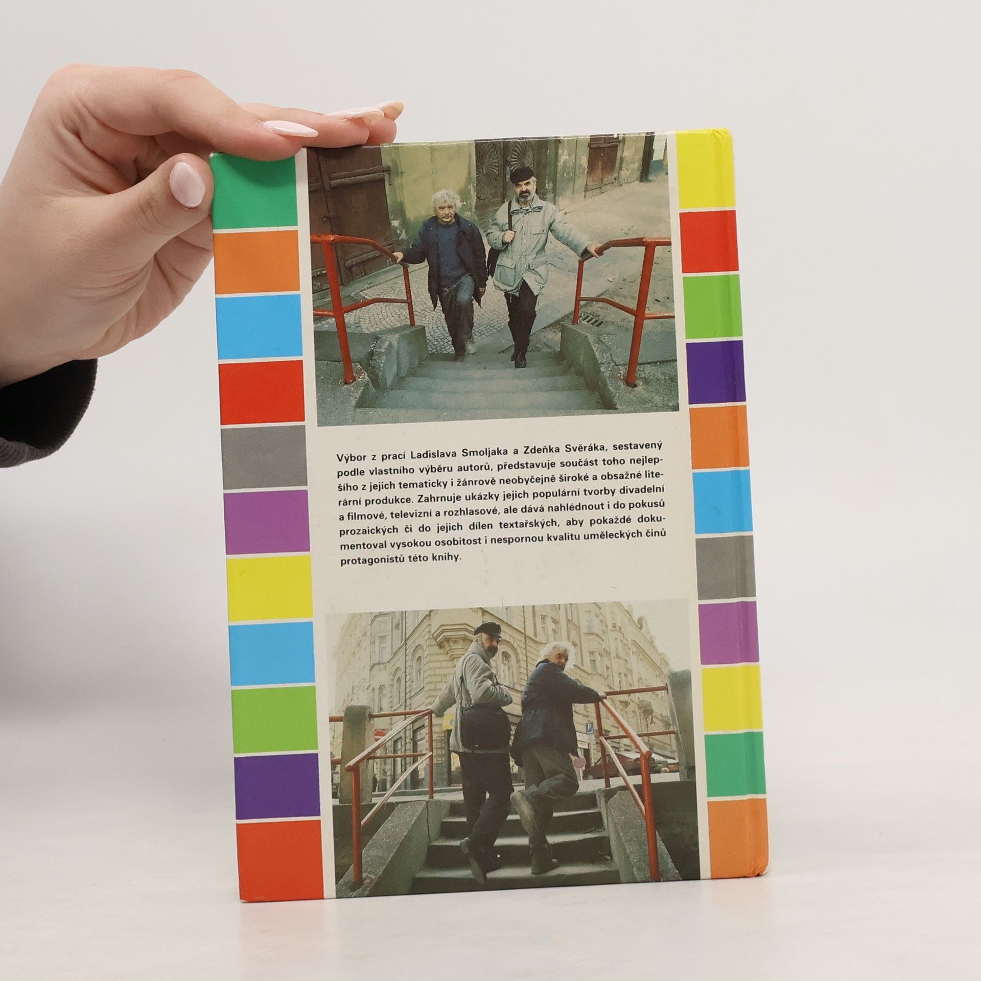 Výbor z prací Ladislava Smoljaka a Zdeňka Svěráka, sestavený podle vlastního výběru autorů, představuje součást toho nejlepšího z jejich tematicky i žánrově neobyčejně široké a obsažné literární produkce. Zahrnuje ukázky jejich populární tvorby divadelní a filmové, televizní a rozhlasové, ale dává nahlédnout i do pokusů prozaických či do jejich dílen textařských, aby pokaždé dokumentoval vysokou osobitost i nespornou kvalitu uměleckých činů protagonistů této knihy.