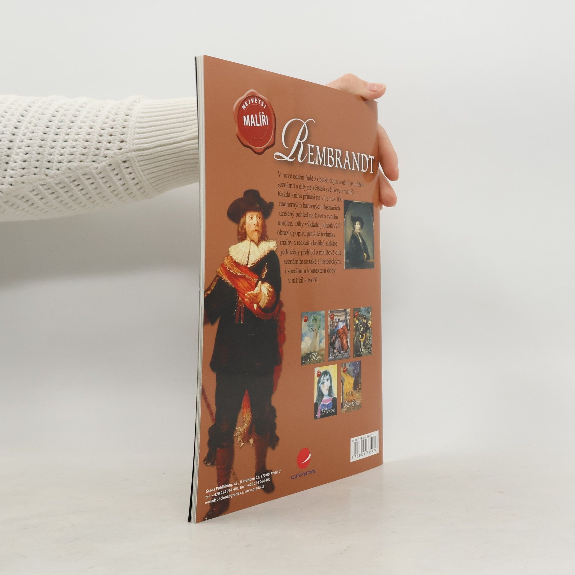 Kniha nové ediční řady z oblasti dějin umění vám přináší ucelený a aktuální pohled na život a tvorbu Rembrandta van Rijna (1606-1669), jednoho z nejlepších malířů a grafiků západního umění. Slavným se stal již za svého života a brzy byl považován za největšího nizozemského malíře. Jeho dílo zahrnuje portréty, autoportréty a také holandské krajiny a obrazy s mytologickými či biblickými náměty. Nejslavnějším Rembrandtovým obrazem je Noční hlídka, obrovské plátno, na němž nezachytil jen obvyklou skupinovou podobu vojáků, ale vylíčil situaci z jejich života plnou vzruchu a napětí.