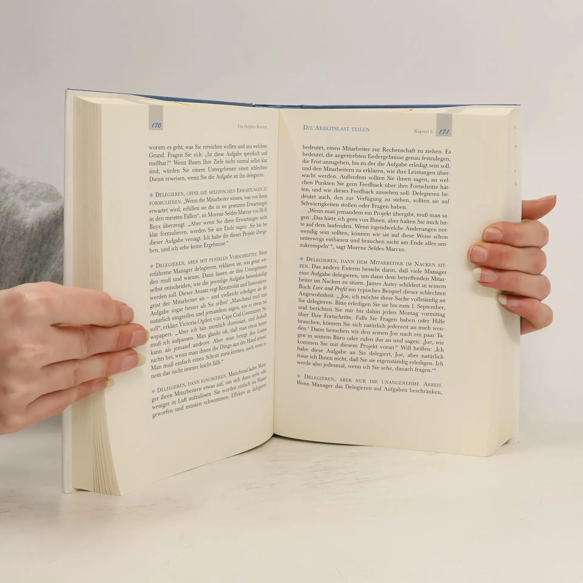 Inhaltsübersicht: Vorwort, Einführung, 1. Der Angriff der Haie ist vorüber, 2. Stahl und Herz: Die Power-Werkzeuge des Delphins, 3. Ein grossartiger Beginn: Wenn Sie die neue Chefin sind, 4. Wie man gutte Mitarbeiter anzieht und behält, 5. Von Mitarbeitern zum Team: Der Delphin als Coach, 6. Die Arbeitslast teilen, 7. Gute Mitarbeiter werden nicht geboren, sondern gemacht, 8. Die heitere Seite der Menschenführung, 9. Der Umgang mit Konflikten und schwierigen Mitarbeitern, 10. Verhandlungen, bei denen alle Beteiligten gewinnen, 11. Widrigkeiten überwinden, 12. Nicht härter arbeiten, sondern klüger, 13. Der Aufstieg auf der Karriereleiter: Auffallen und befördert werden, 14. Der Aufstieg: Hindernisse, auf die Frauen stossen, 15. Mit den Delphinen schwimmen, Bibliographie, Dank, Register.