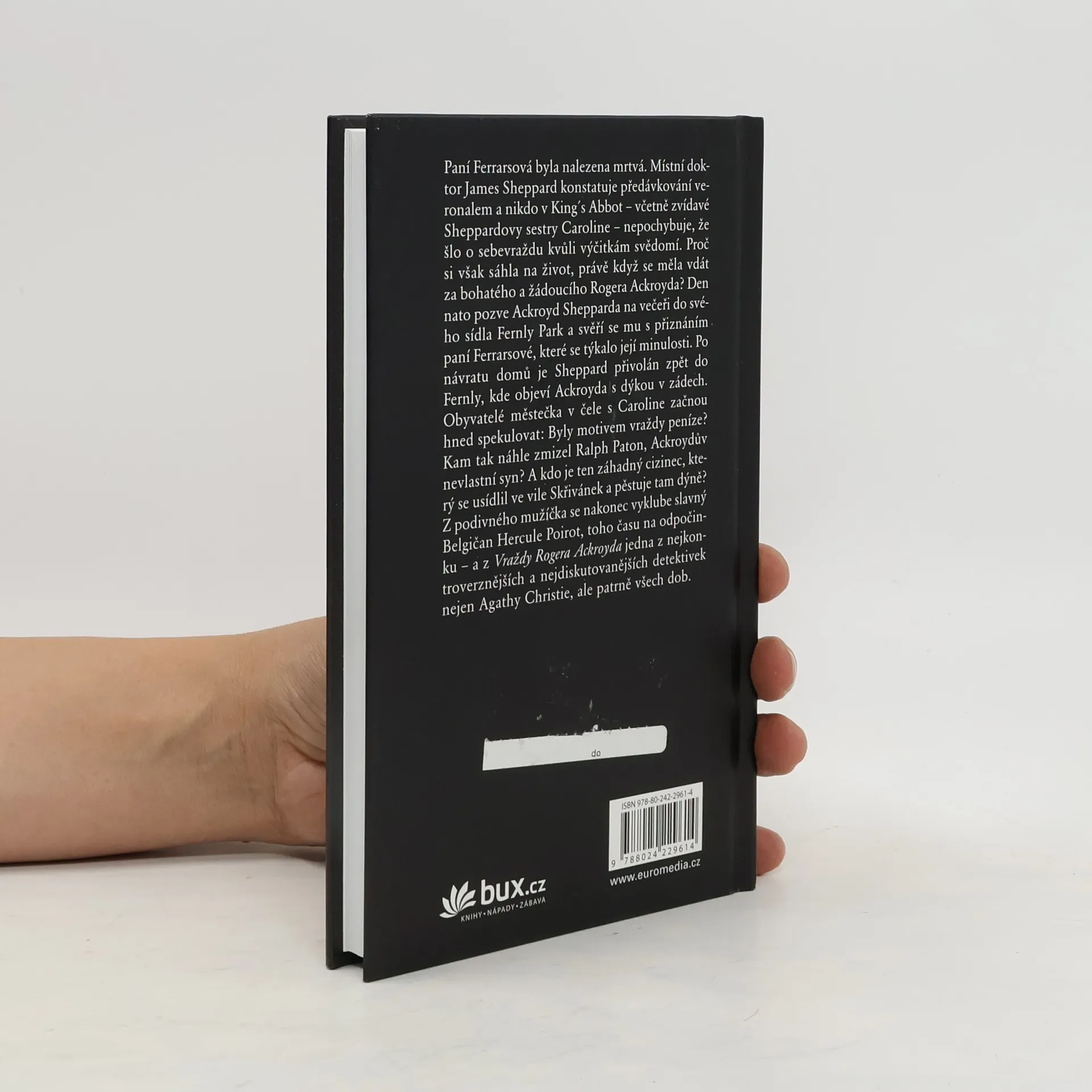 Paní Ferrarsová byla nalezena mrtvá. Nikdo v King’s Abbot nepochybuje, že šlo o sebevraždu kvůli výčitkám svědomí. Proč si však sáhla na život, právě když se měla vdát za bohatého a žádoucího Rogera Ackroyda? Den nato pozve Ackroyd na večeři do svého sídla Fernly Park místního doktora Jamese Shepparda a svěří se mu s tajemstvím paní Ferrarsové, kterou někdo z místních vydíral. Po návratu domů je Sheppard přivolán zpět do Fernly, kde nalezne Ackroyda s dýkou v zádech… Slavný Belgičan Hercule Poirot odhaluje pachatele vraždy v jedné z nejkontroverznějších a nejdiskutovanějších detektivek všech dob.