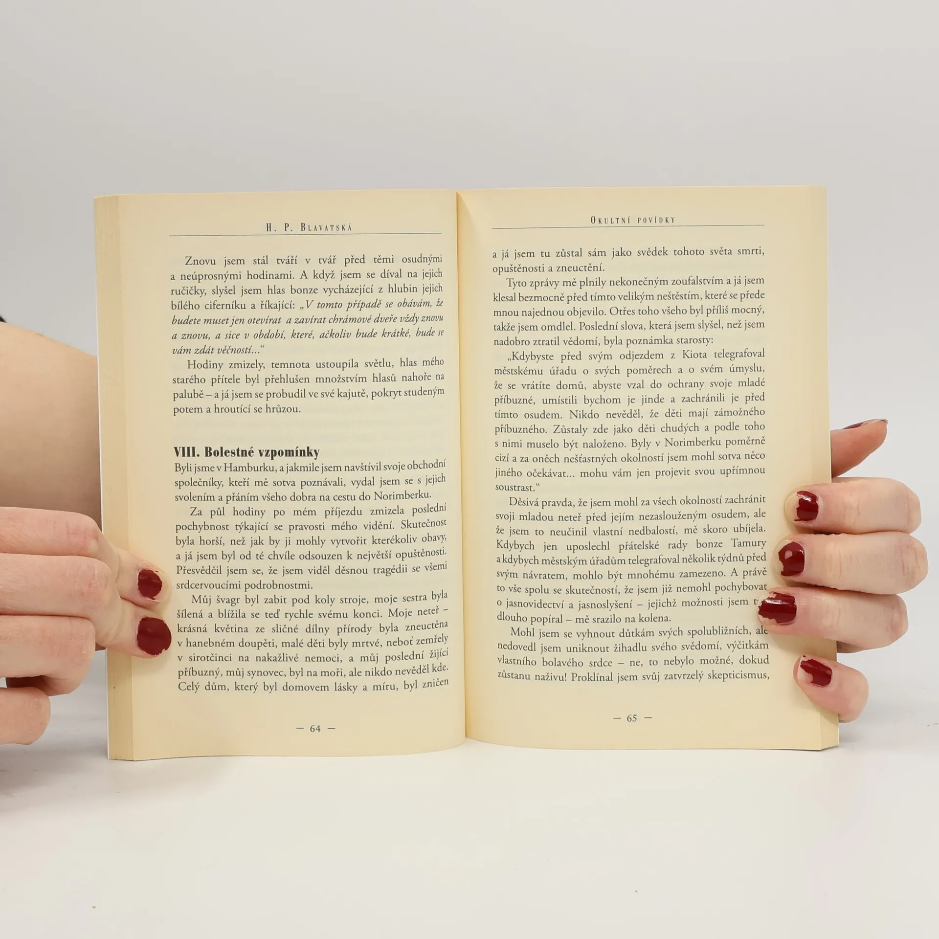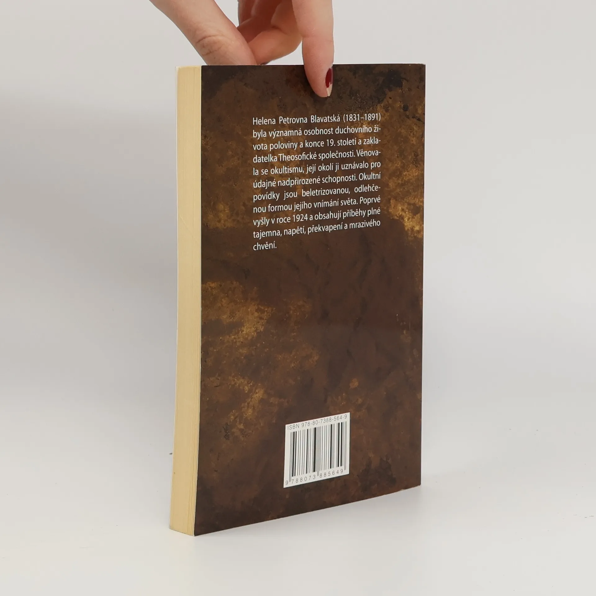 Helena Petrovna Blatavská (1831-1891) byla významná osobnost duchovního života poloviny 19.století a zakladatelka Theosofické společnosti. Věnovala se okultismu, její okolí ji uznávalo pro údajné nadpřirozené schopnosti. Okultní povídky jsou beletrizovanou, odlehčenou formou jejího vnímání světa. Poprvé vyšly v roce 1924 a obsahují příběhy plné tajemna, napětí, překvapení a mrazivého chvění.