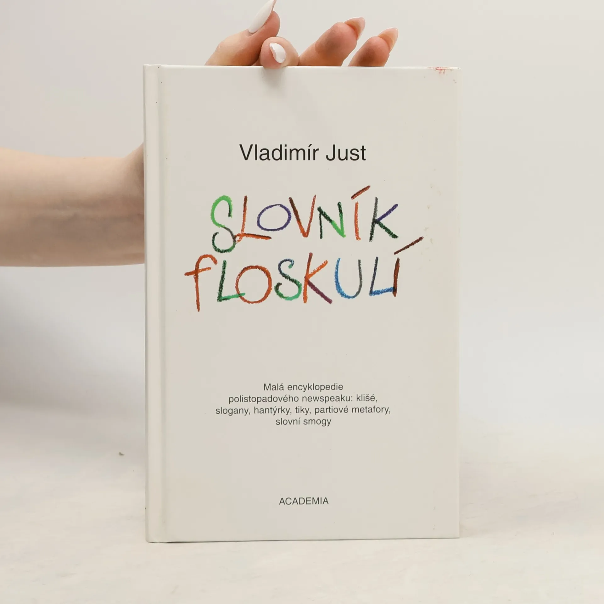 Malá encyklopedie polistopadového newspeaku: klišé, slogany, hantýrky, tiky, partiové metafory, slovní smogy. Vladimír Just se častým obcováním s televizí, rozhlasem, novinami a časopisy nadýchal takového množství slovního smogu, že před pěti lety začal psát Slovník floskulí. „V jakém časovém horizontu?“, zeptá se redaktorka úředníka a myslí tím: dokdy. Nemusíte nic říkat, nemusíte si nic myslet – floskule mluví a myslí za vás. Proto je tak milují totalitní režimy, v demokraciích pak úřady, policajti a politici.
