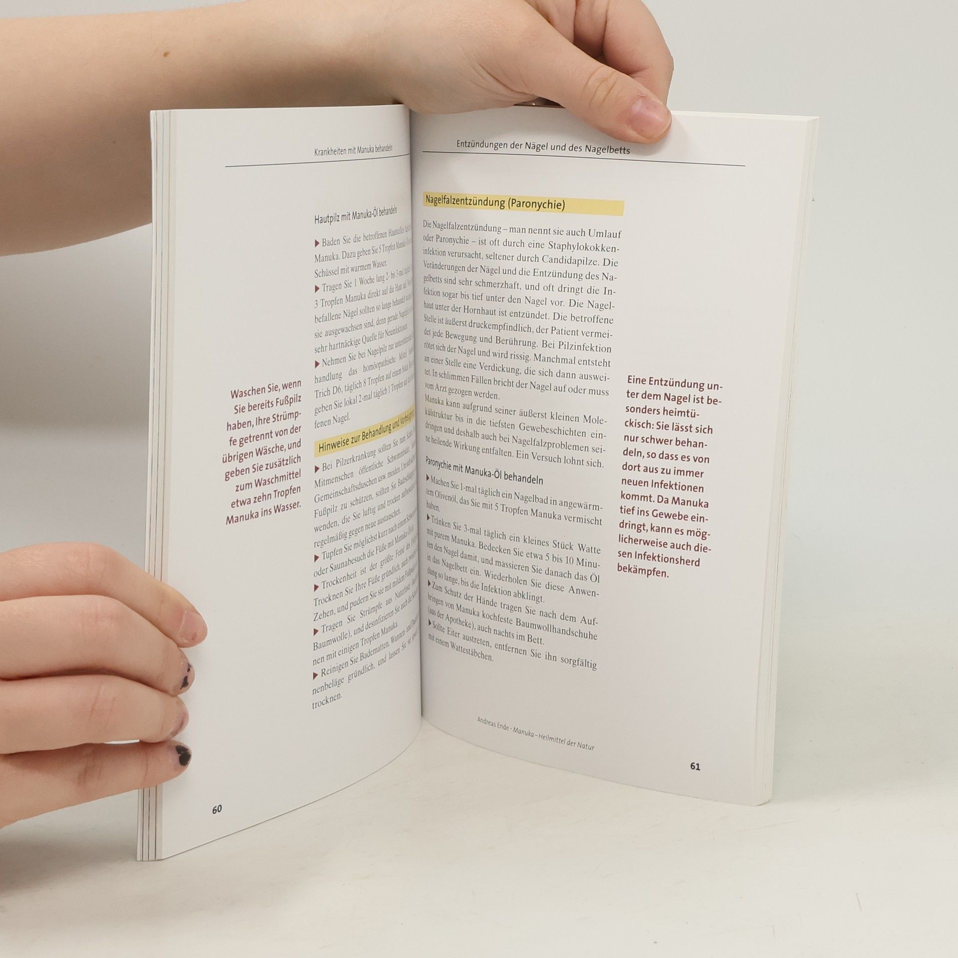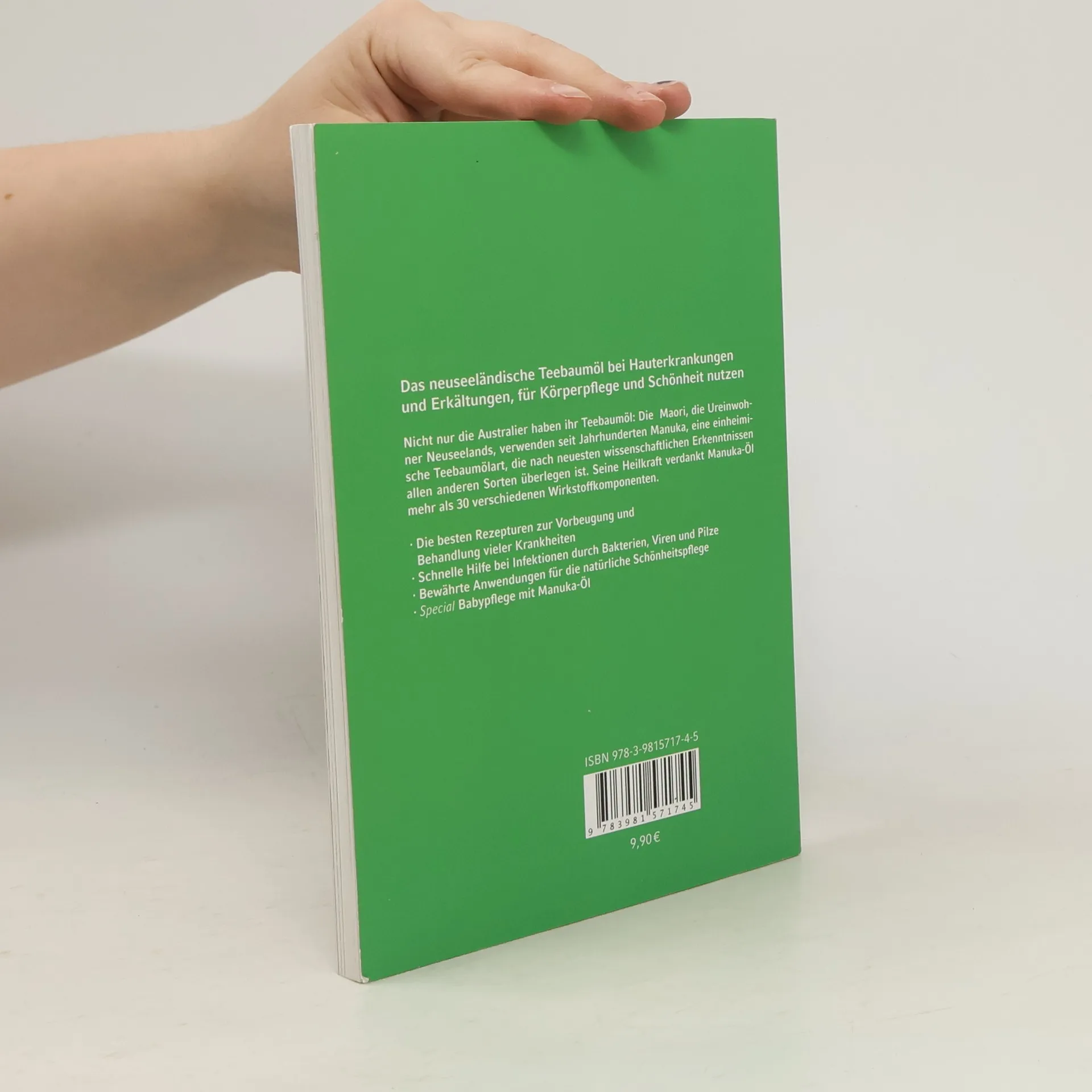 Das neuseeländische Teebaumöl bei Hauterkrankungen und Erkältungen, für Körperpflege und Schönheit nutzen. Nicht nur die Australier haben ihr Teebaumöl: Die Maori, die Ureinwohner Neuseelands, verwenden seit Jahrhunderten Manuka, eine einheimische Teebaumölart, die nach neuesten wissenschaftlichen Erkenntnissen allen anderen Sorten überlegen ist. Seine Heilkraft verdankt Manuka-Öl mehr als 30 verschiedenen Wirkstoffkomponenten. Inhalte: Die besten Rezepturen zur Vorbeugung und Behandlung vieler Krankheiten; Schnelle Hilfe bei Infektionen durch Bakterien, Viren und Pilze; Bewährte Anwendungen für die natürliche Schönheitspflege; Special: Babypflege mit Manuka-Öl