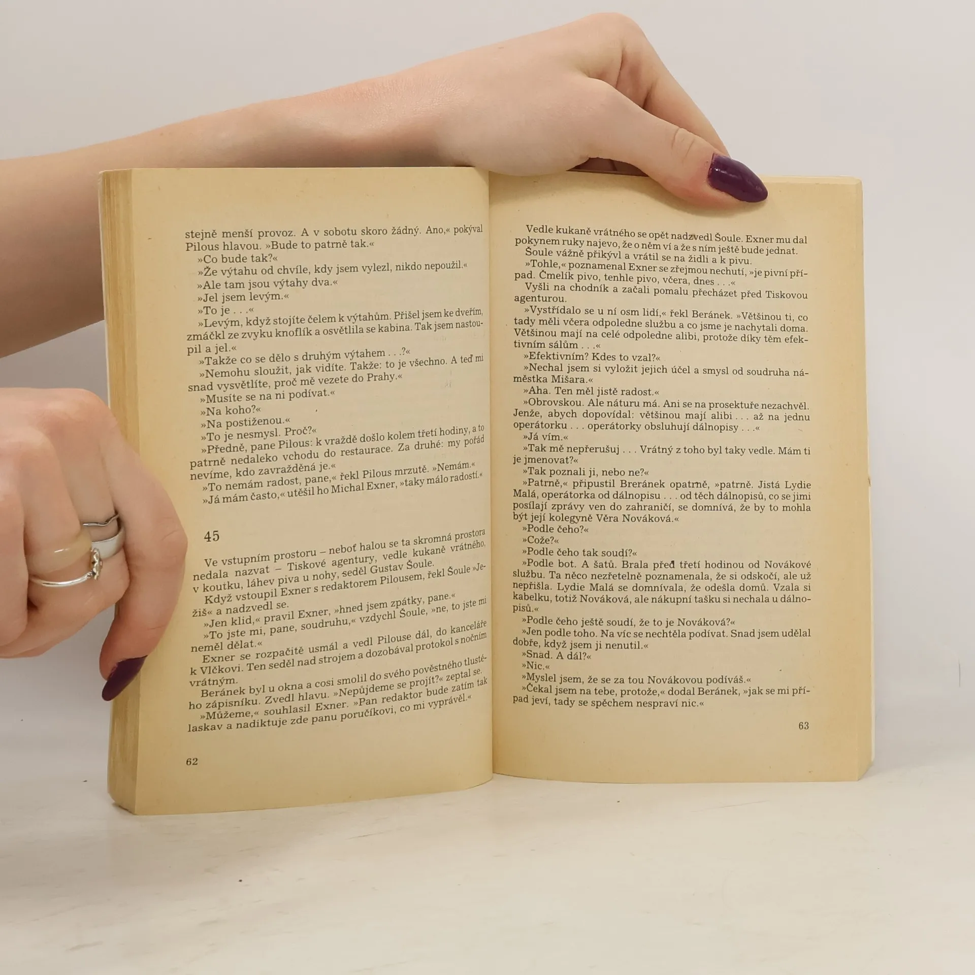 Ve foyer malého divadla bylo nalezeno příšerně zohavené mrtvé ženské tělo. Foyer oddělovaly jen zamčené obyčejné dveře od podzemních místností Tiskové agentury. A právě sousedství tiskové centrály, které dálnopisy spojovaly doslova s celým světem, vedlo kapitána Exnera a jeho tým vyšetřovatelů k odhalení vražedného motivu a nakonec i k odhalení téměř dvojnásobného vra­ha. Vydání 2., v nakladatelství Svoboda 1. vydání.