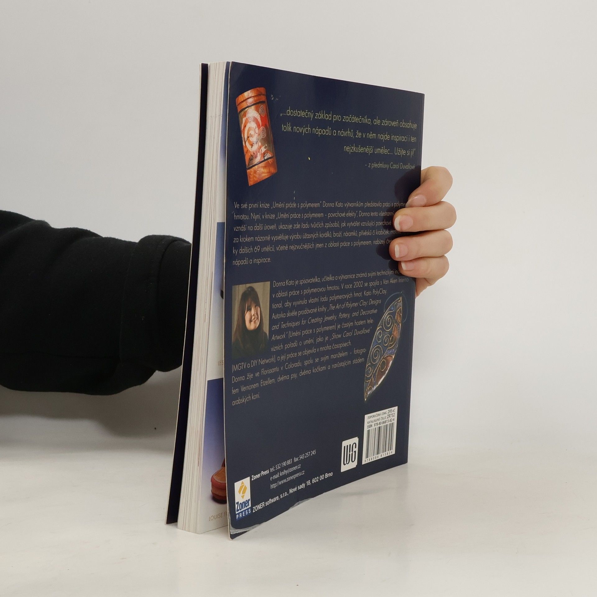 Naučte se tvořit z polymerové hmoty (FIMO). Ve své první knize The Art of Polymer Clay Donna Kato výtvarníkům představila radost práce s polymerovou hmotou. V této knize Donna tento všestranný materiál povznáší na další úroveň, ukazuje zde řady tvůrčích způsobů, jak vytvářet vzrušující povrchové efekty a krok za krokem názorně vysvětluje výrobu úžasných korálků, broží, náramků, přívěsků či krabiček.