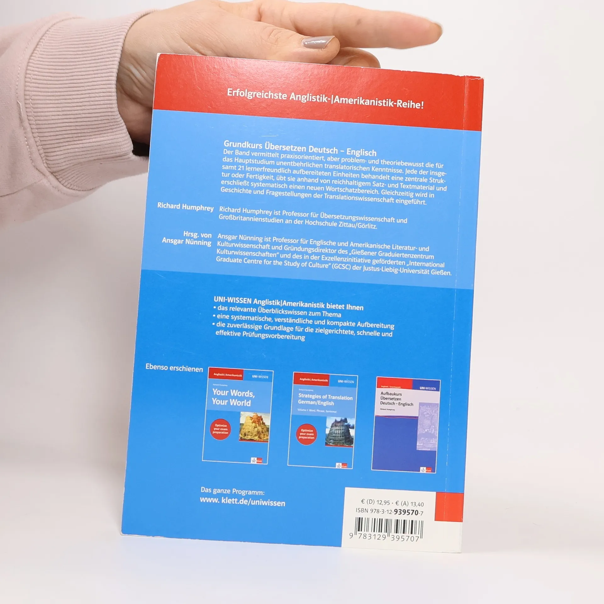 Der Band vermittelt praxisorientiert, aber problem- und theoriebewusst die für das Hauptstudium unentbehrlichen translatorischen Kenntnisse. Jede der insgesamt 21 lernerfreundlich aufbereiteten Einheiten behandelt eine zentrale Struktur oder Fertigkeit, übt sie anhand von reichhaltigem Satz- und Textmaterial und erschließt systematisch einen neuen Wortschatzbereich. Gleichzeitig wird in Geschichte und Fragestellungen der Translationswissenschaft eingeführt.