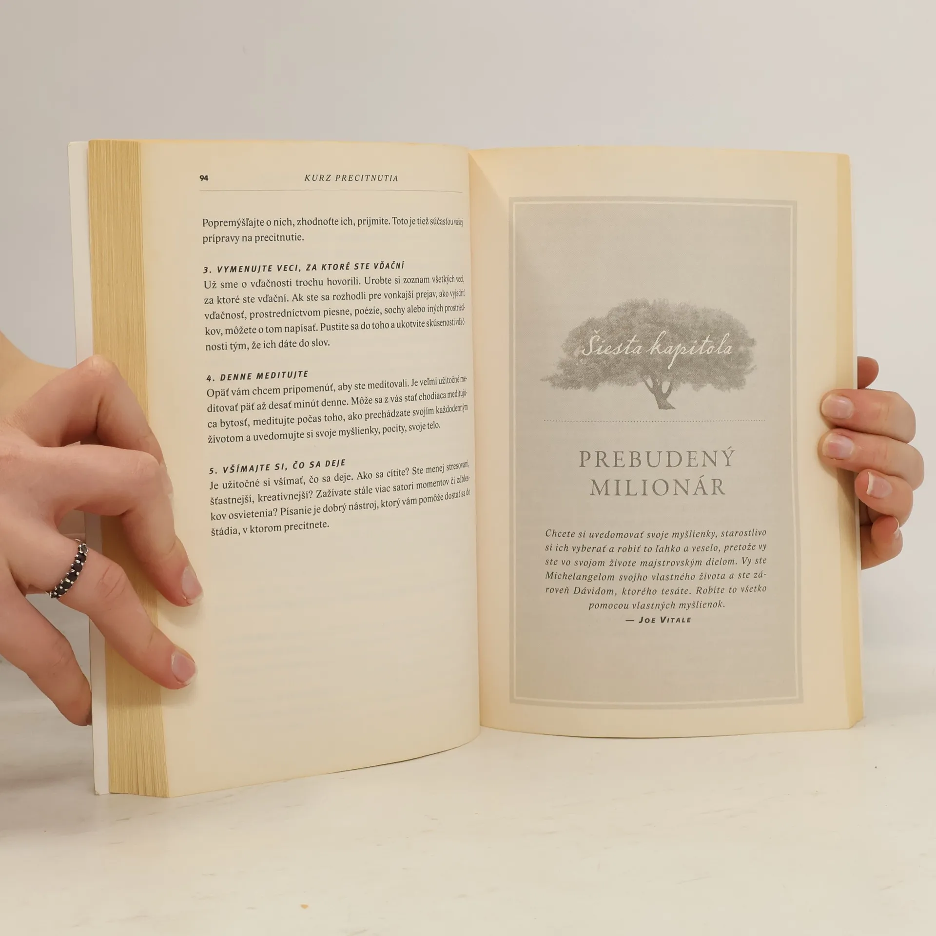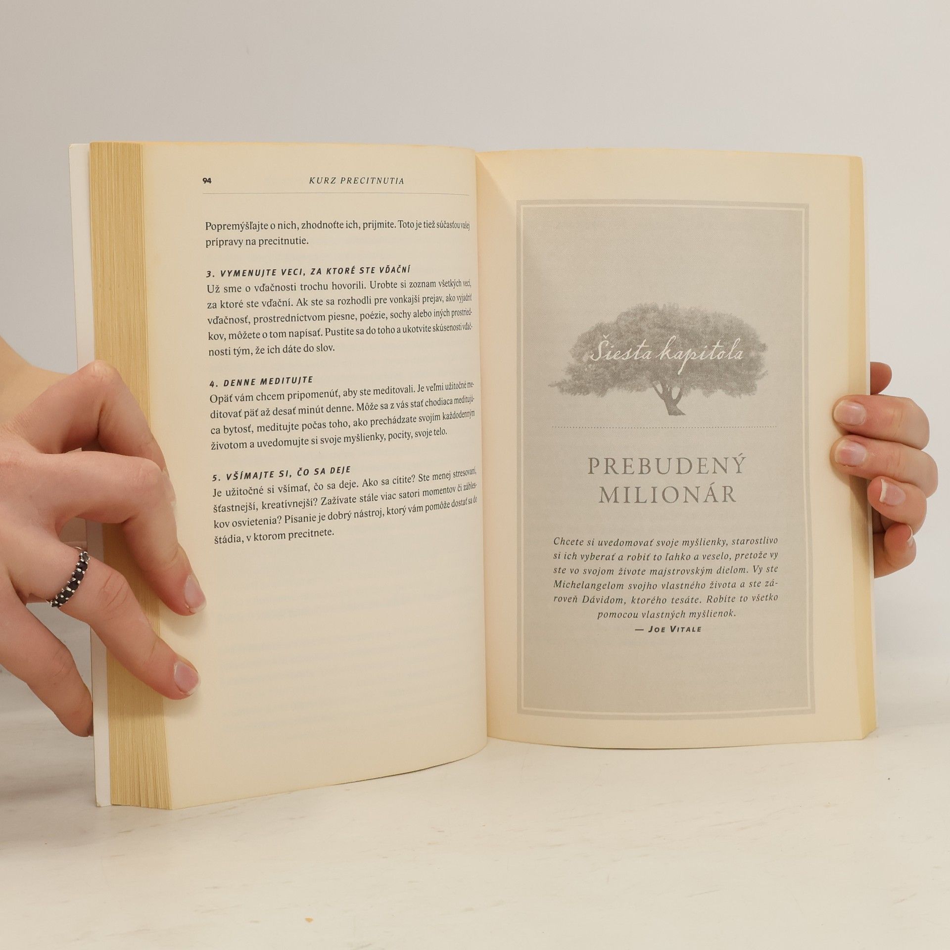 Čo by ste si trúfli urobiť, keby ste nemali čo stratiť? Čím by ste chceli byť, keby ste mali zaručený bezpodmienečný úspech? Čo by ste sa odvážili vlastniť, keby neexistovali žiadne limity? Na čo by ste sa odhodlali? Je čas urobiť niečo, čo stojí za to. Vitajte na Kurze precitnutia. Jeho autor, Joe Vitale, žil mnoho rokov ako bezdomovec a dnes patrí k najväčším guru internetového marketingu. No nielen to; Joe Vitale je jedným z najznámejších motivačných rečníkov súčasnosti, tvorcom tzv. spirituálneho marketingu, svetoznámym propagátorom „zákona príťažlivosti“ a čistenia podvedomia od škodlivých myšlienok z minulosti.