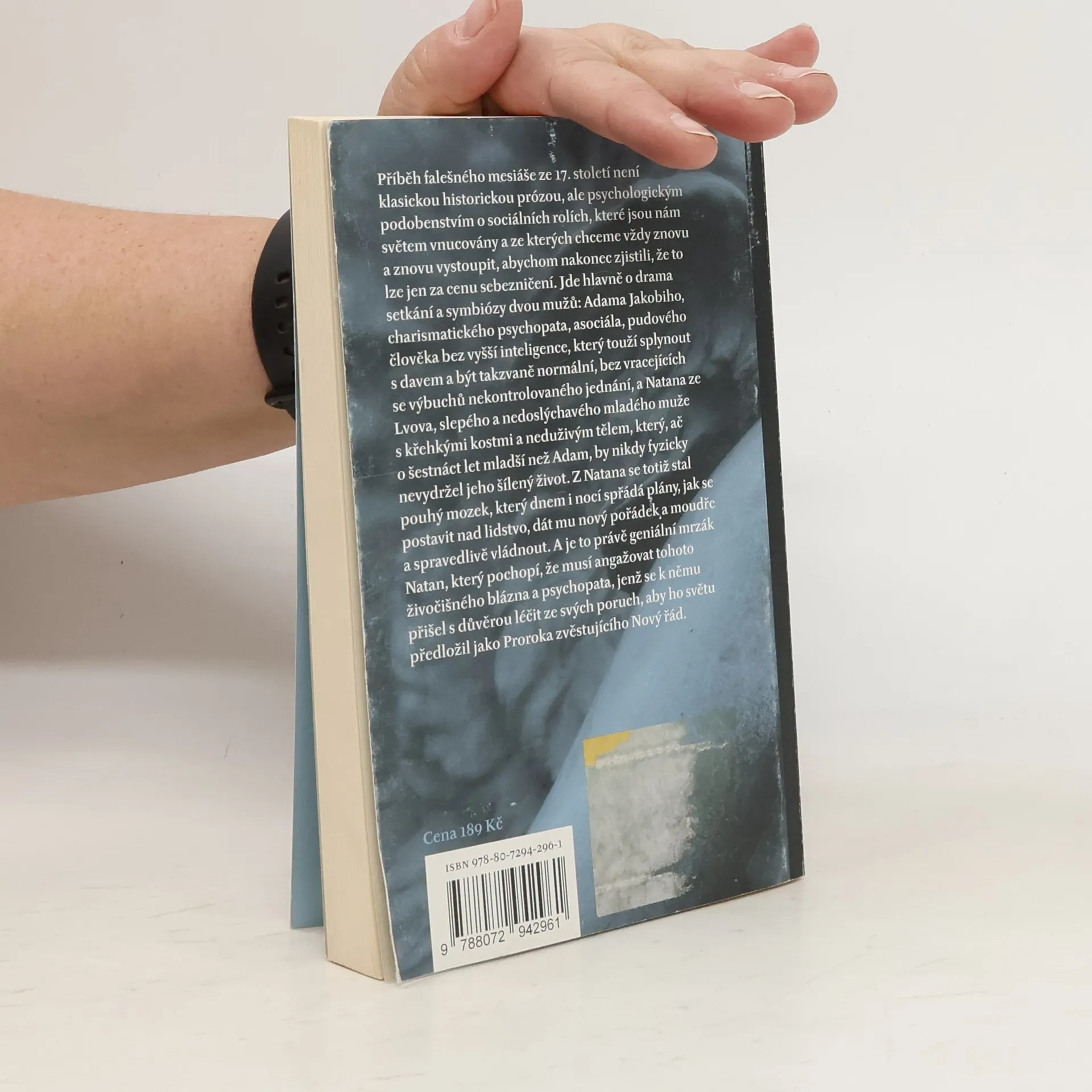 Příběh falešného mesiáše ze 17. století není klasickou historickou prózou, ale psychologickým podobenstvím o sociálních rolích, které jsou nám světem vnucovány, a ze kterých chceme vždy znovu a znovu vystoupit, abychom nakonec zjistili, že to lze jen za cenu sebezničení. Jde hlavně o drama setkání a symbiózy dvou mužů: Adama Jakobiho, charismatického psychopata, asociála, pudového člověka bez vyšší inteligence, který touží splynout s davem a být takzvaně normální, bez vracejících se výbuchů nekontrolovaného jednání, a Natana ze Lvova, slepého a nedoslýchavého mladého muže s křehkými kostmi a neduživým tělem, který, ač o šestnáct let mladší než Adam, by nikdy fyzicky nevydržel jeho šílený život. Z Natana se totiž stal pouhý mozek, který dnem i nocí spřádá plány, jak se postavit nad lidstvo, dát mu nový pořádek a moudře a spravedlivě vládnout. A je to právě geniální mrzák Natan, který pochopí, že musí angažovat tohoto živočišného blázna a psychopata, jenž se k němu přišel s důvěrou léčit ze svých poruch, aby ho světu předložil jako Proroka zvěstujícího Nový řád.