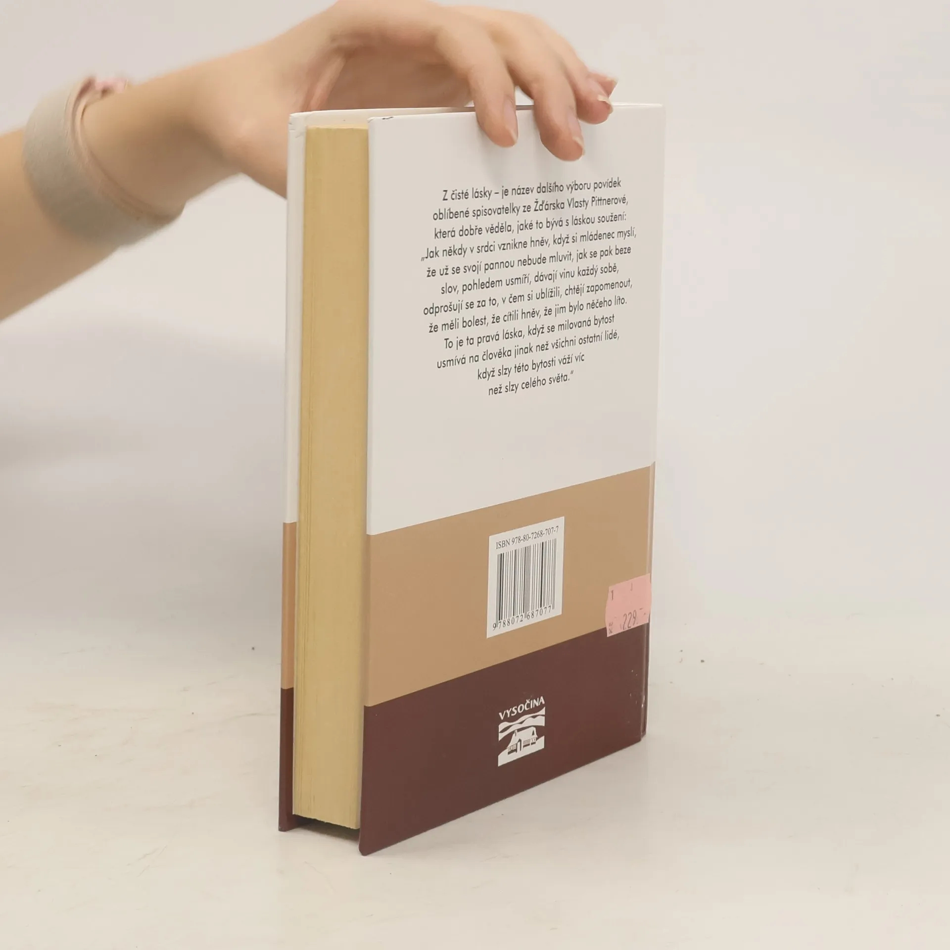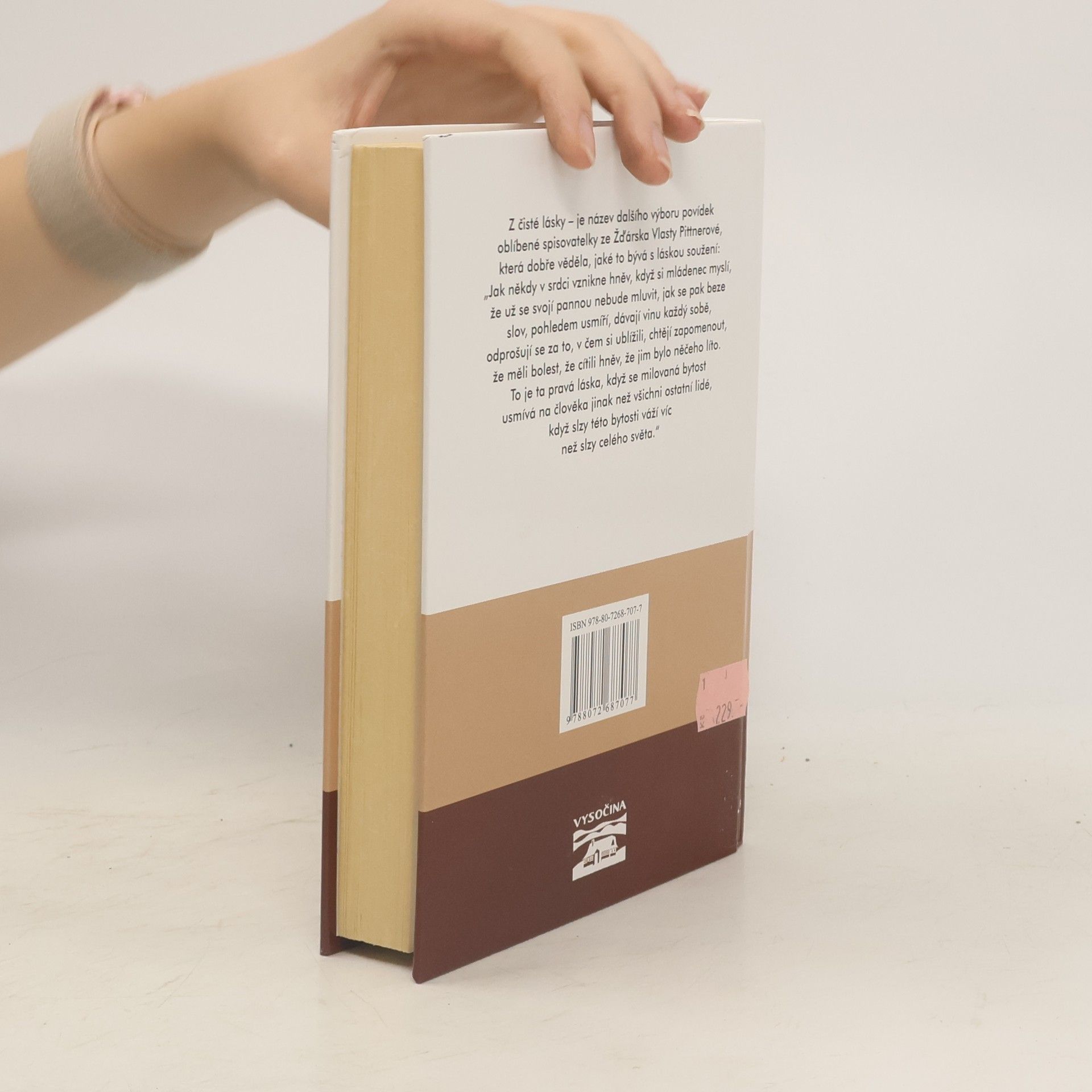 Z čisté lásky – je název dalšího výboru povídek oblíbené spisovatelky ze Žďárska Vlasty Pittnerové, která dobře věděla, jaké to bývá s láskou soužení: „Jak někdy v srdci vznikne hněv, když si mládenec myslí, že už se svojí pannou nebude mluvit, jak se pak beze slov, pohledem usmíří, dávají vinu každý sobě, odprošují se za to, v čem si ublížili, chtějí zapomenout, že měli bolest, že cítili hněv, že jim bylo něčeho líto. To je ta pravá láska, když se milovaná bytost usmívá na člověka jinak než všichni ostatní lidé, když slzy této bytosti váží víc než slzy celého světa.“