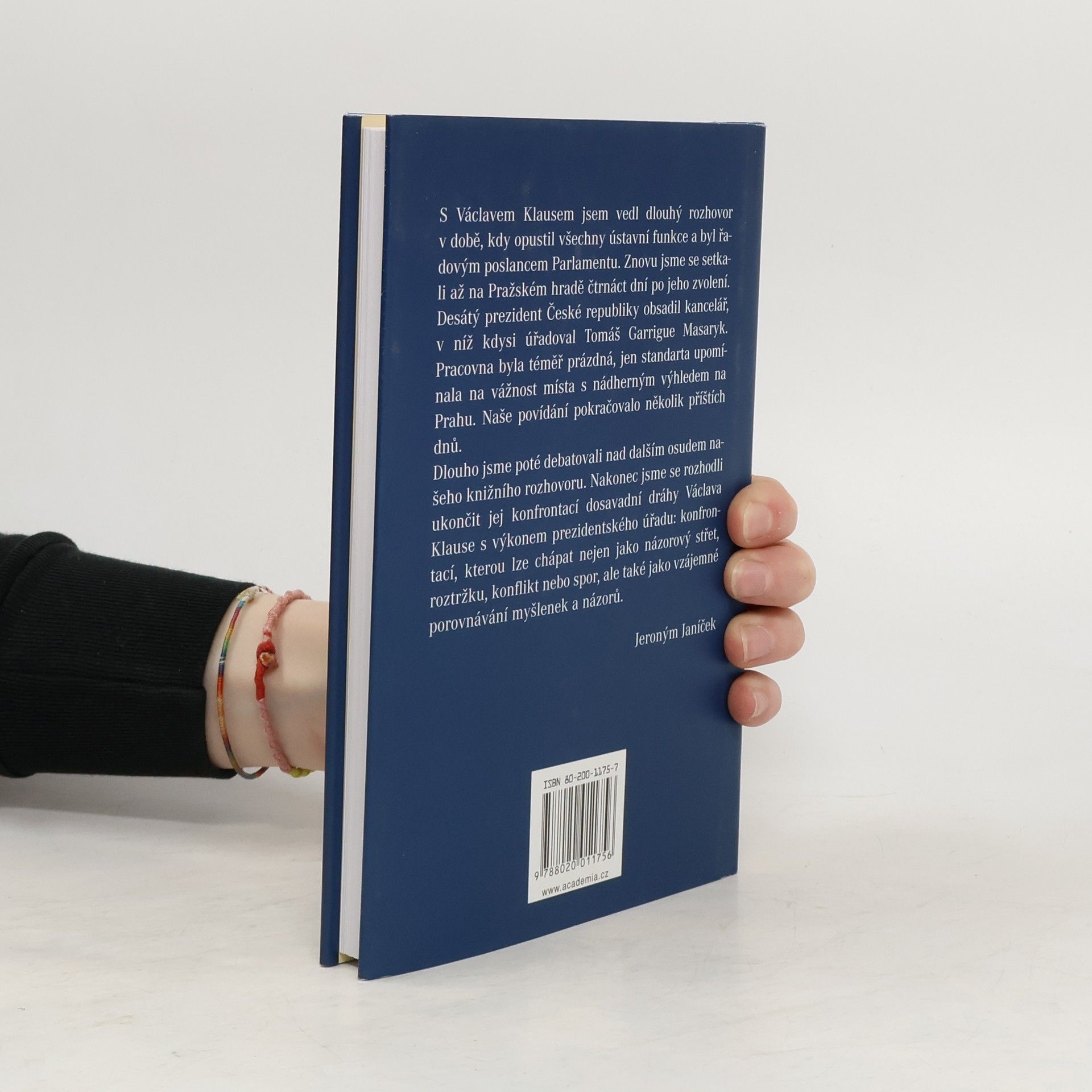 /Prezident Václav Klaus v diskusi s Jeronýmem Janíčkem/ Novinář Jeroným Janíček vedl dlouhý rozhovor s Václavem Klausem v době, kdy opustil všechny ústavní funkce a byl řadovým poslancem Parlamentu. Znovu se pak setkali na Pražském hradě po čtrnácti dnech od zvolení Klause prezidentem České republiky. Rozhovor se tak stal konfrontací dosavadní dráhy Václava Klause s výkonem prezidentského úřadu: konfrontací, kterou lze chápat nejen jako názorový střet, roztržku, konflikt nebo spor, ale také jako vzájemné porovnávání myšlenek a názorů.... celý text