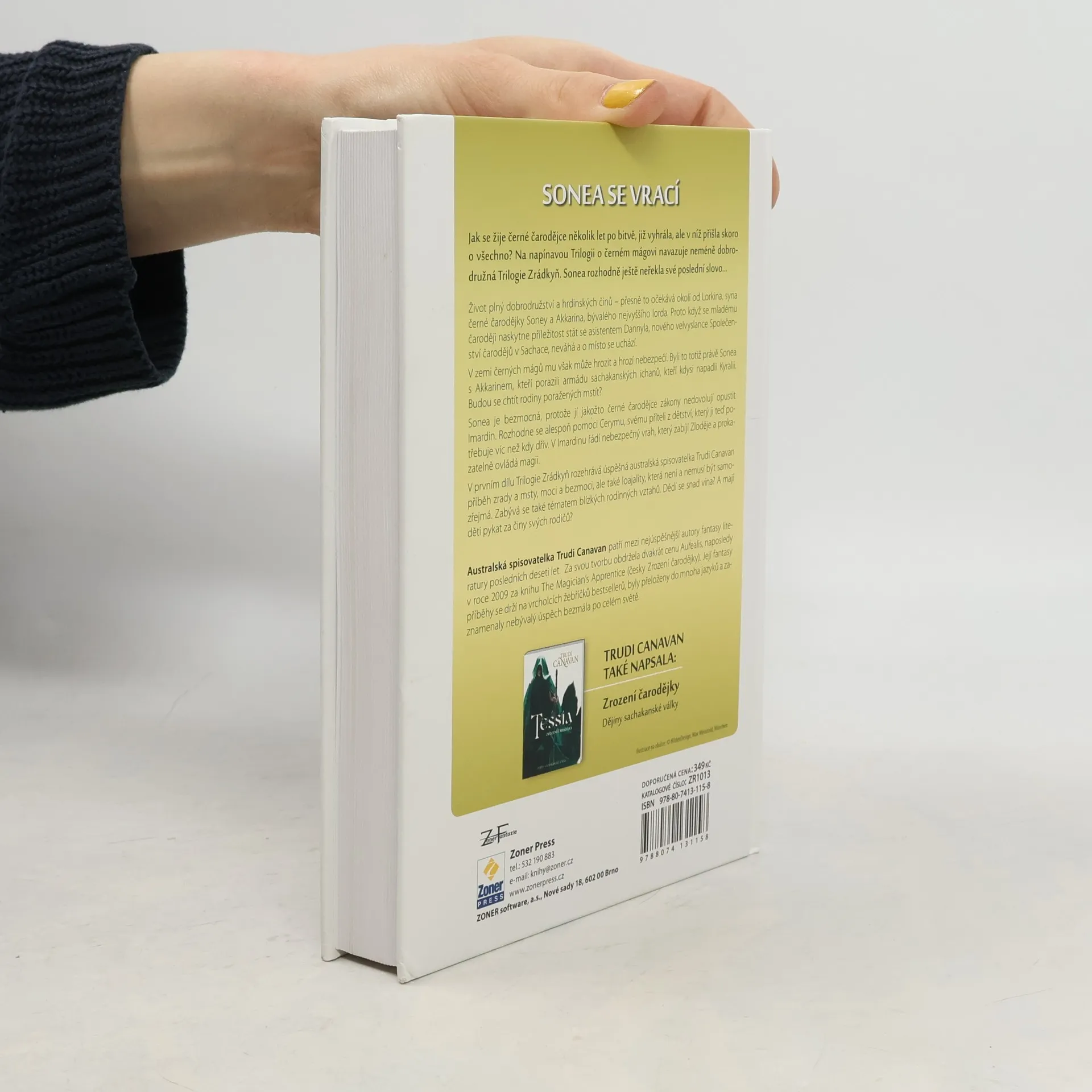 Jak se žije černé čarodějce několik let po bitvě, již vyhrála, ale v níž přišla skoro o všechno? Na napínavou Trilogii o černém mágovi navazuje neméně dobrodružná Trilogie Zrádkyň. Sonea rozhodně ještě neřekla své poslední slovo… Život plný dobrodružství a hrdinských činů – přesně to očekává okolí od Lorkina, syna černé čarodějky Soney a Akkarina, bývalého nejvyššího lorda. Proto když se mladému čaroději naskytne příležitost stát se asistentem Dannyla, nového velvyslance Společenství čarodějů v Sachace, neváhá a o místo se uchází. V zemi černých mágů mu však může hrozit a hrozí nebezpečí. Byli to totiž právě Sonea s Akkarinem, kteří porazili armádu sachakanských ichanů, kteří kdysi napadli Kyralii. Budou se chtít rodiny poražených mstít?