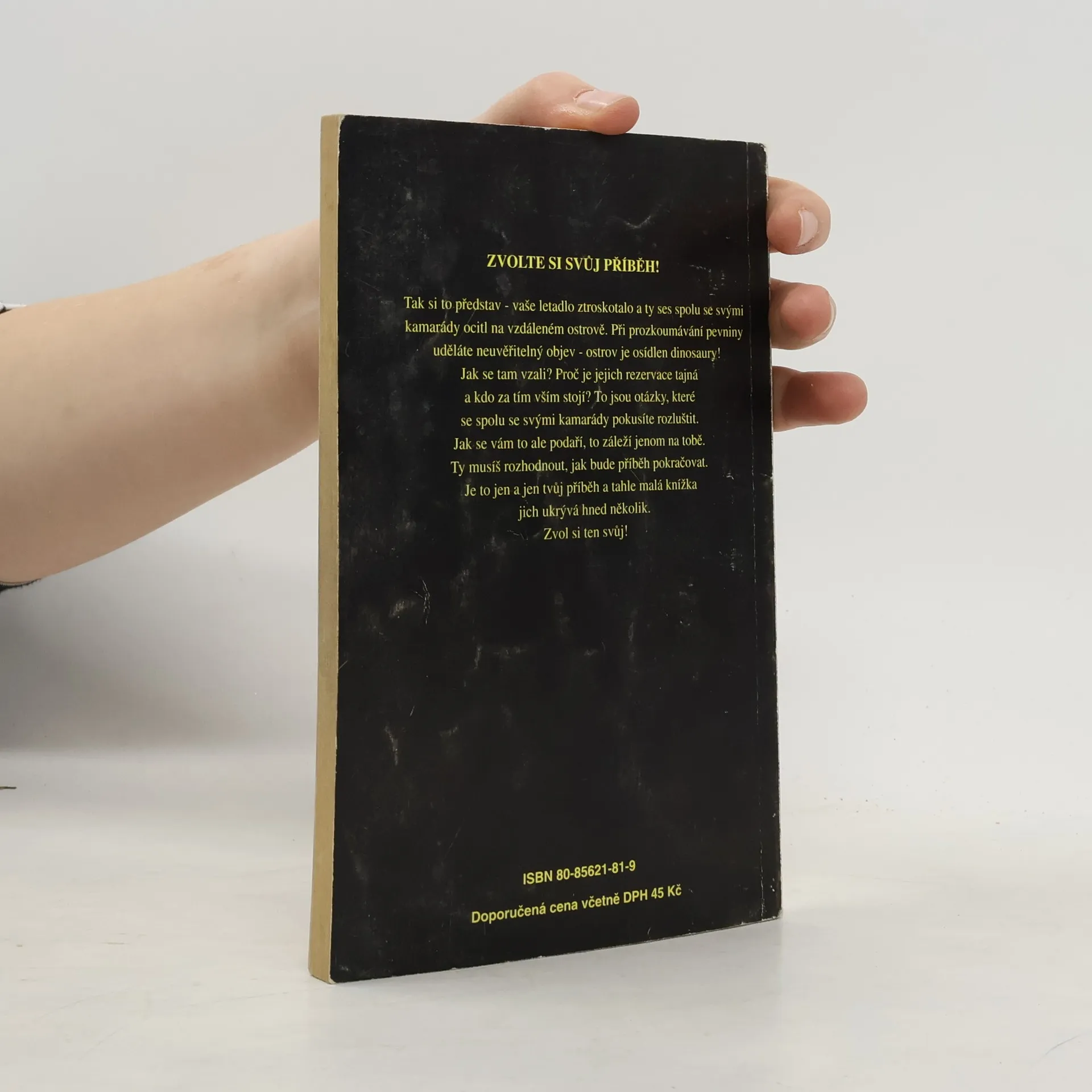 Tak si to představ – vaše letadlo ztroskotalo a ty ses spolu se svými kamarády ocitl na vzdáleném ostrově. Při prozkoumávání pevniny uděláte neuvěřitelný objev – ostrov je osídlen dinosaury! Jak se tam vzali? Proč je jejich rezervace tajná a kdo za tím vším stojí? To jsou otázky, které se spolu se svými kamarády pokusíte rozluštit. Jak se vám to ale podaří, to záleží jenom na tobě. Ty musíš rozhodnout, jak bude příběh pokračovat. Je to jen a jen tvůj příběh a tahle malá knížka jich ukrývá hned několik. Zvol si ten svůj!