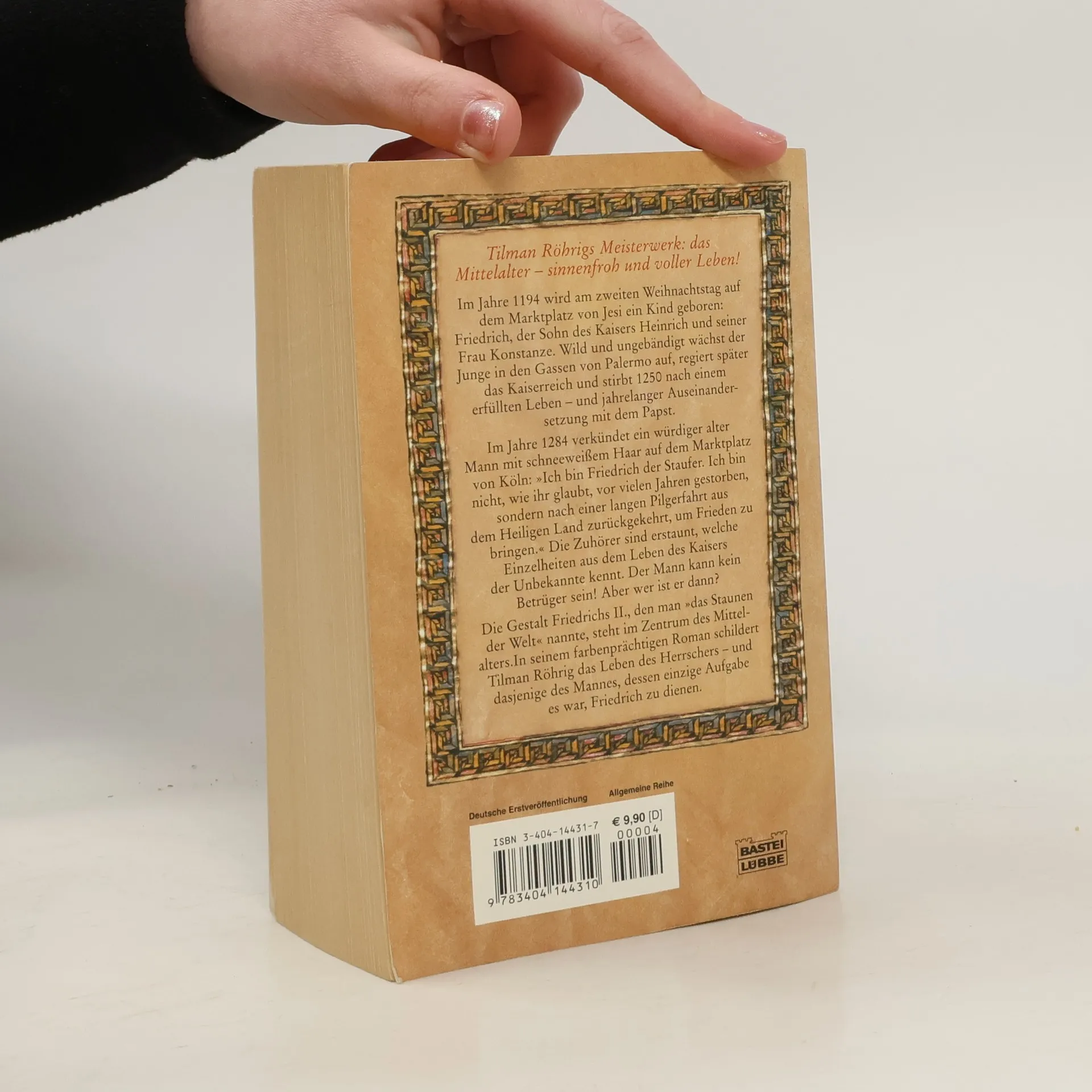 Im Jahre 1194 wird am zweiten Weihnachtstag auf dem Marktplatz von Jesi ein Kind geboren: Friedrich, der Sohn des Kaisers Heinrich und seiner Frau Konstanze. Wild und ungebändigt wächst der Junge in den Gassen von Palermo auf, regiert später das Kaiserreich und stirbt 1250 nach einem erfülltem Leben - und jahrelanger Auseinandersetzung mit dem Papst. Im Jahre 1284 verkündet ein würdiger alter Mann mit schneeweißem Haar auf dem Marktplatz von Köln: ? Ich bin Friedrich der Staufer. Ich bin nicht, wie ihr glaubt, vor vielen Jahren gestorben, sondern nach einer langen Pilgerfahrt aus dem Heiligen Land zurückgekehrt, um Frieden zu bringen.? Die Zuhörer sind erstaunt, welche Einzelheiten aus dem Leben des Kaisers der Unbekannte kennt. Der Mann kann kein Betrüger sein! Aber wer ist er dann? Die Gestalt Friedrichs II., den man ? das Staunen der Welt? nannte, steht im Zentrum des Mittelalters. In seinem farbenprächtigen Roman schildert Tilman Röhrig das Leben des Herrschers - und dasjenige des Mannes, dessen einzige Aufgabe es war, Friedrich zu dienen.