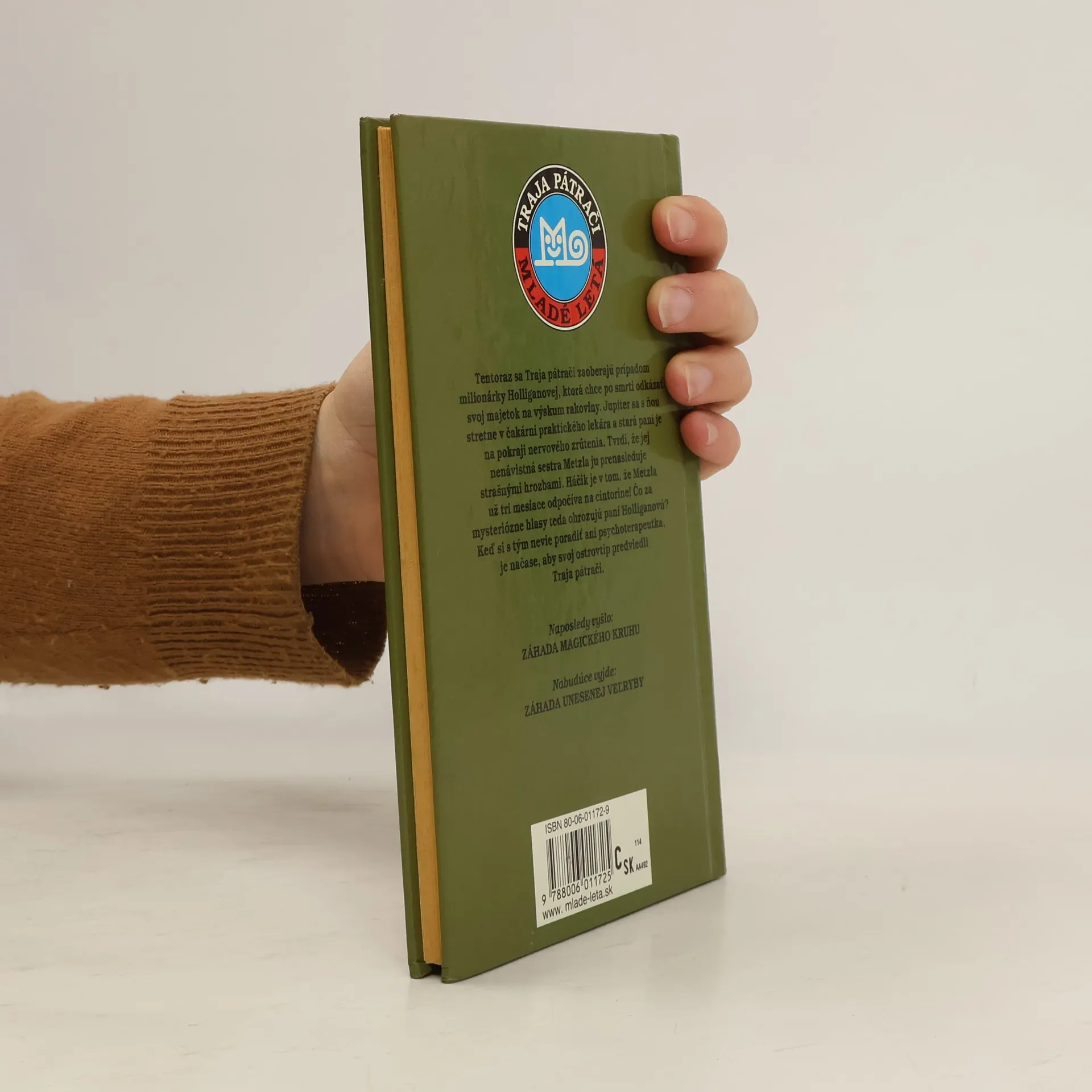 Tentoraz sa Traja pátrači zaoberajú prípadom milionárky Holliganovej, ktorá chce po smrti odkázať svoj majetok na výskum rakoviny. Jupiter sa s ňou stretne v čakárni praktického lekára a stará pani je na pokraji nervového zrútenia. Tvrdí, že jej nenávistná sestra Metzla ju prenasleduje strašnými hrozbami. Háčik je v tom, že Metzla už tri mesiace odpočíva na cintoríne ! Čo za mysteriózne hlasy teda ohrozujú pani Holliganovú ? Keď si s tým nevie poradiť ani psychoterapeutka, je načase, aby svoj ostrovtip predviedli Traja pátrači.