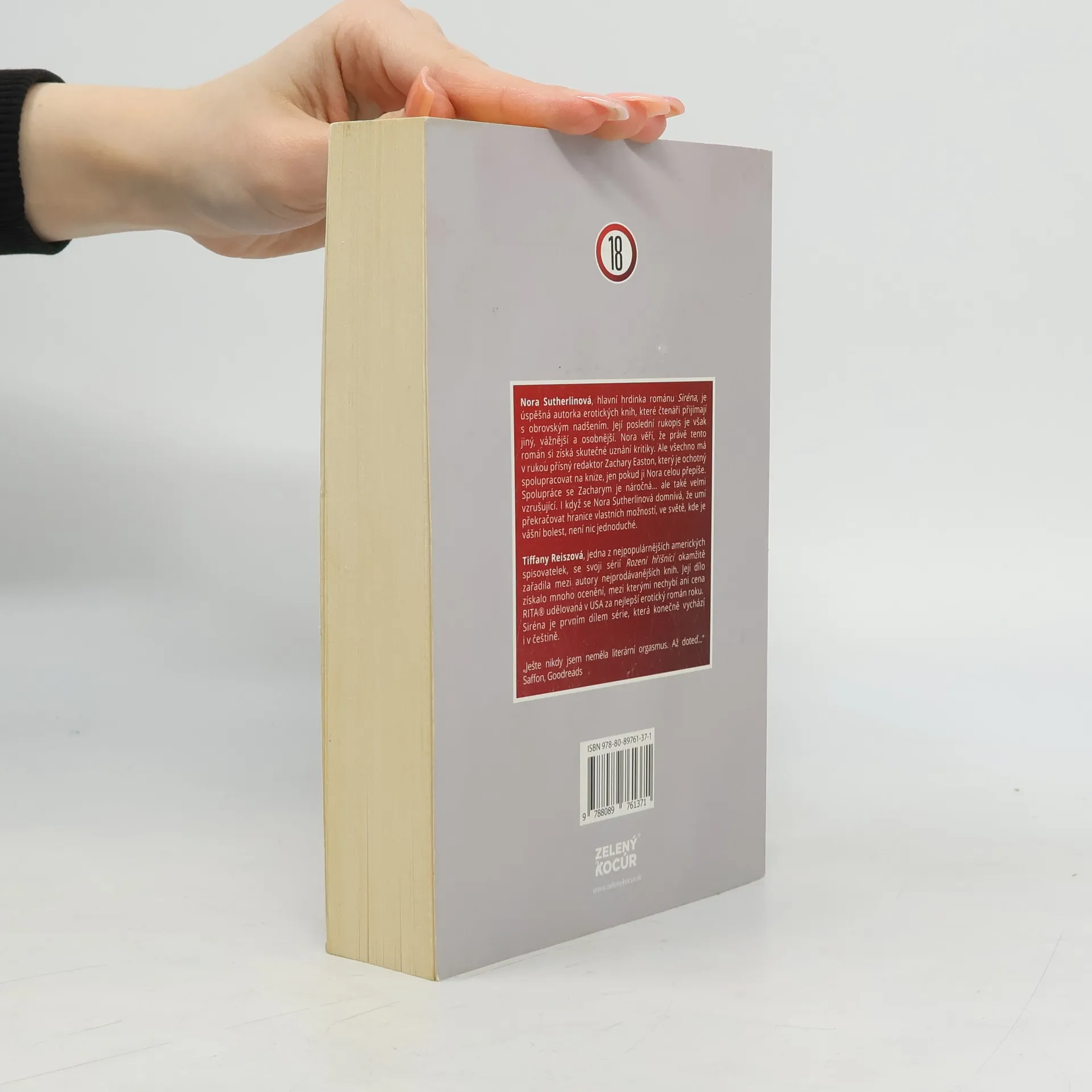 Nora Sutherlinová, hlavní hrdinka románu Siréna, je úspěšná autorka erotických knih, které čtenáři přijímají s obrovským nadšením. Její poslední rukopis je však jiný, vážnější a osobnější. Nora věří, že právě tento román si získá skutečné uznání kritiky. Ale všechno má v rukou přísný redaktor Zachary Easton, který je ochotný spolupracovat na knize, jen pokud ji Nora celou přepíše. Spolupráce se Zacharym je náročná... ale také velmi vzrušující. I když se Nora Sutherlinová domnívá, že umí překračovat hranice vlastních možností, ve světě, kde je vášní bolest, není nic jednoduché. Tiffany Reiszová, jedna z nejpopulárnějších amerických spisovatelek, se svoji sérií Rození hříšníci okamžitě zařadila mezi autory nejprodávanějších knih. Její dílo získalo mnoho ocenění, mezi kterými nechybí ani cena RITA® udělovaná v USA za nejlepší erotický román roku. Siréna je prvním dílem série, která konečně vychází i v češtině.