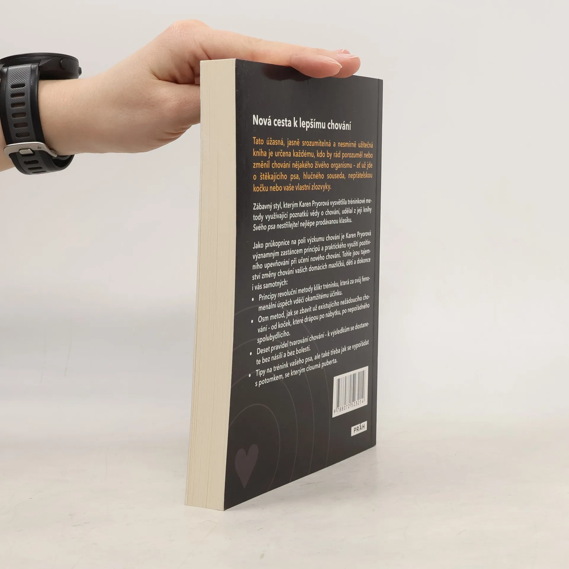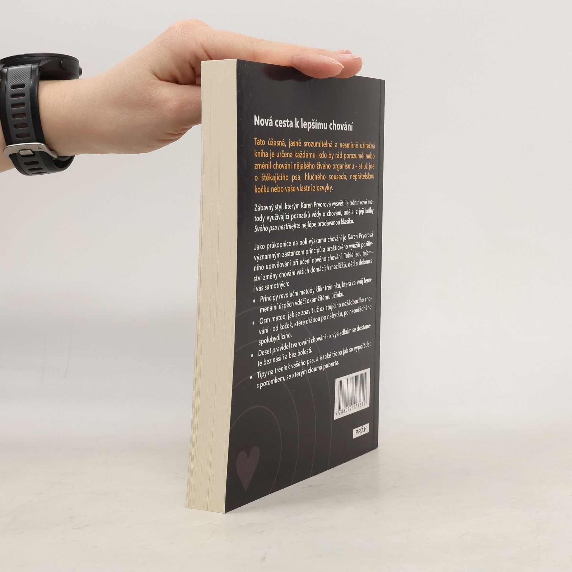 Zakladatelka klikr tréninku Karen Pryorová napsala knihu Svého psa nestřílejte!, která přináší zcela nový přístup k učení a trénování psa, ale nejen jeho. Tato úžasná, jasně srozumitelná a nesmírně užitečná kniha je určena každému, kdo by rád porozuměl nebo změnil chování nějakého živého organismu - ať už jde o štěkajícího psa, hlučného souseda, nepřátelskou kočku nebo vaše vlastní zlozvyky. Světově uznávaná klasika Jako průkopnice na poli výzkumu chování je Karen Pryorová významným zastáncem principů a praktického využití pozitivního upevňování při učení nového chování. Tohle jsou tajemství změny chování vašich domácích mazlíčků, dětí a dokonce i vás samotných: Principy revoluční metody klikr tréninku, která za svůj fenomenální úspěch vděčí okamžitému účinku. Osm metod, jak se zbavit už existujícího nežádoucího chování - od koček, které drápou po nábytku, po nepořádného spolubydlícího. Deset pravidel tvarování chování - k výsledkům se dostanete bez násilí a bez bolesti. Tipy na trénink vašeho psa, ale také třeba jak se vypořádat s potomkem, se kterým cloumá puberta.