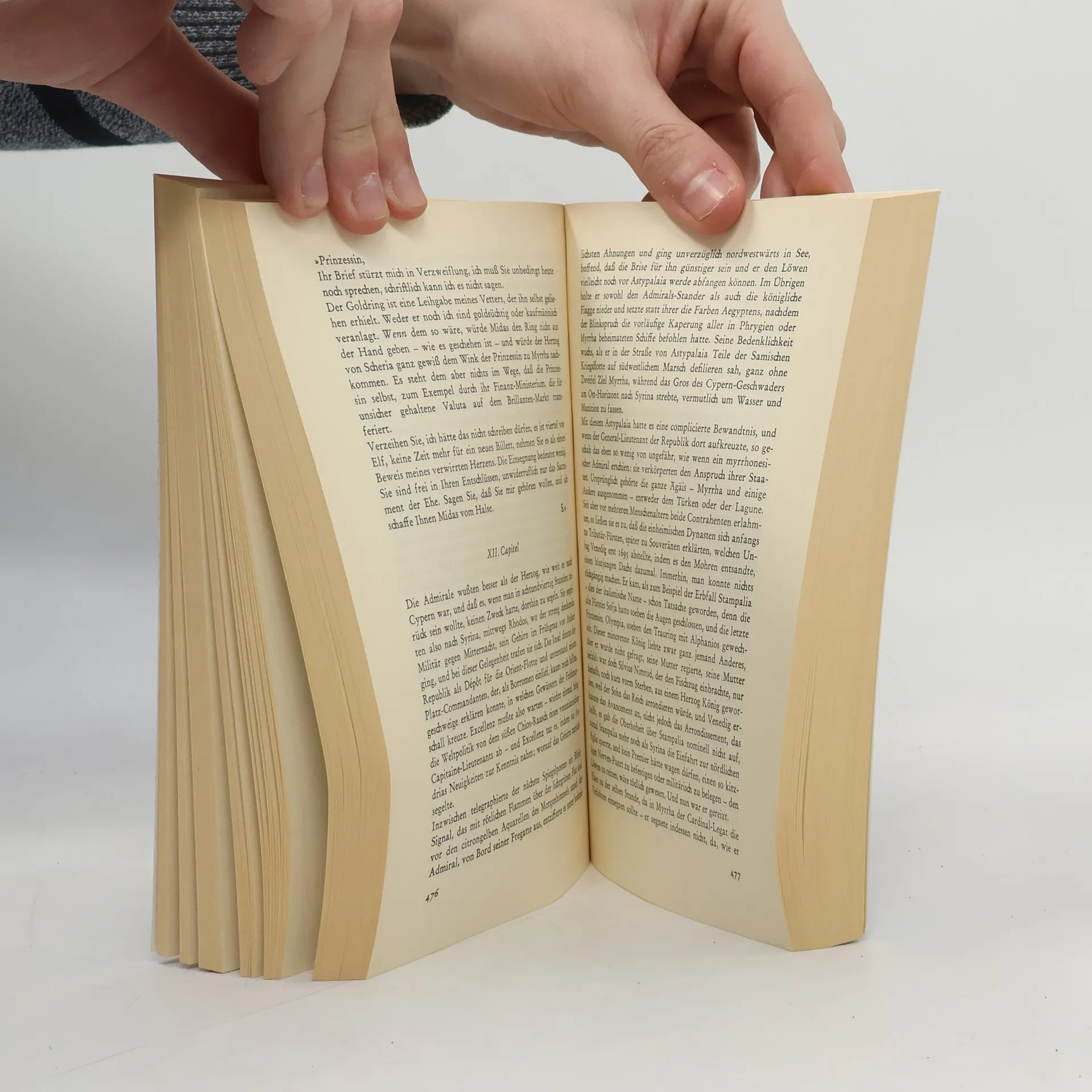 Das Inselreich Myrrha im Jahr 1732. König Alphanios ist das Opfer intriganter Minister und Finanzleute. Die Regierungsgeschäfte sind unentwirrbar verfahren, und die Großreiche Venedig und Konstantinopel bemühen sich eifrig, das Königtum zu annektieren. Dazu umwerben sie die Thronfolgerin, die kluge und selbständige Prinzessin Danae, den Liebling des Volkes. Die entzieht sich jedoch dem höfischen Zeremoniell und versucht allen Intrigen zu begegnen, um ihrem Land zu helfen. Niebelschütz greift mit diesem Roman auf die Gattung der galanten Dichtung des Rokoko zurück. Meisterhaft bedient er sich des Stils der Epoche und legt sein Epos ganz nebenbei noch nach den traditionellen Kompositionsprinzipien der klassischen Musik an. »Warum ist Niebelschütz nicht mindestens so ein Erfolg wie Eco? Manchmal möchte man die Menge packen, schütteln und anschreien: So nehmt doch das Original.« (Gerd Haffmans)