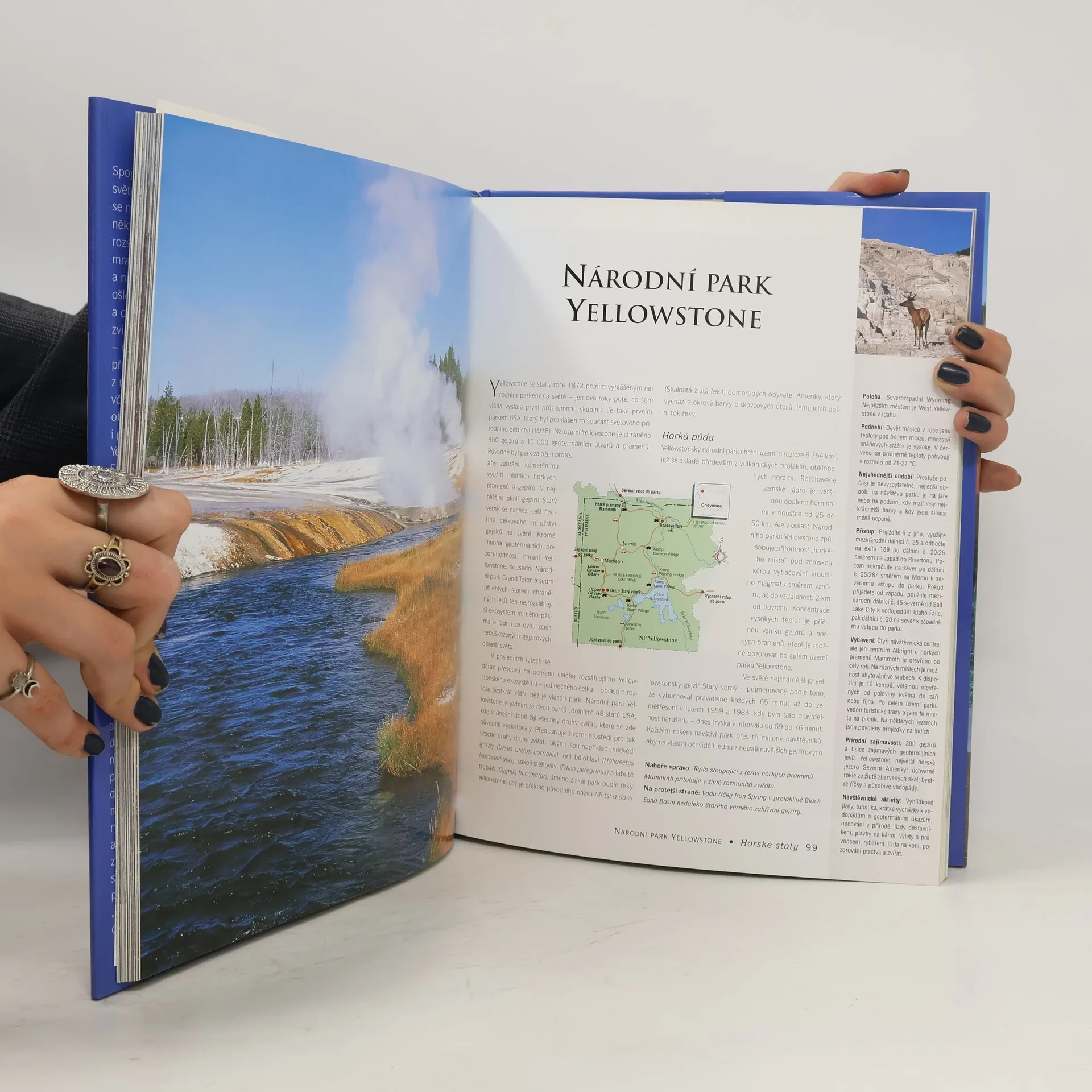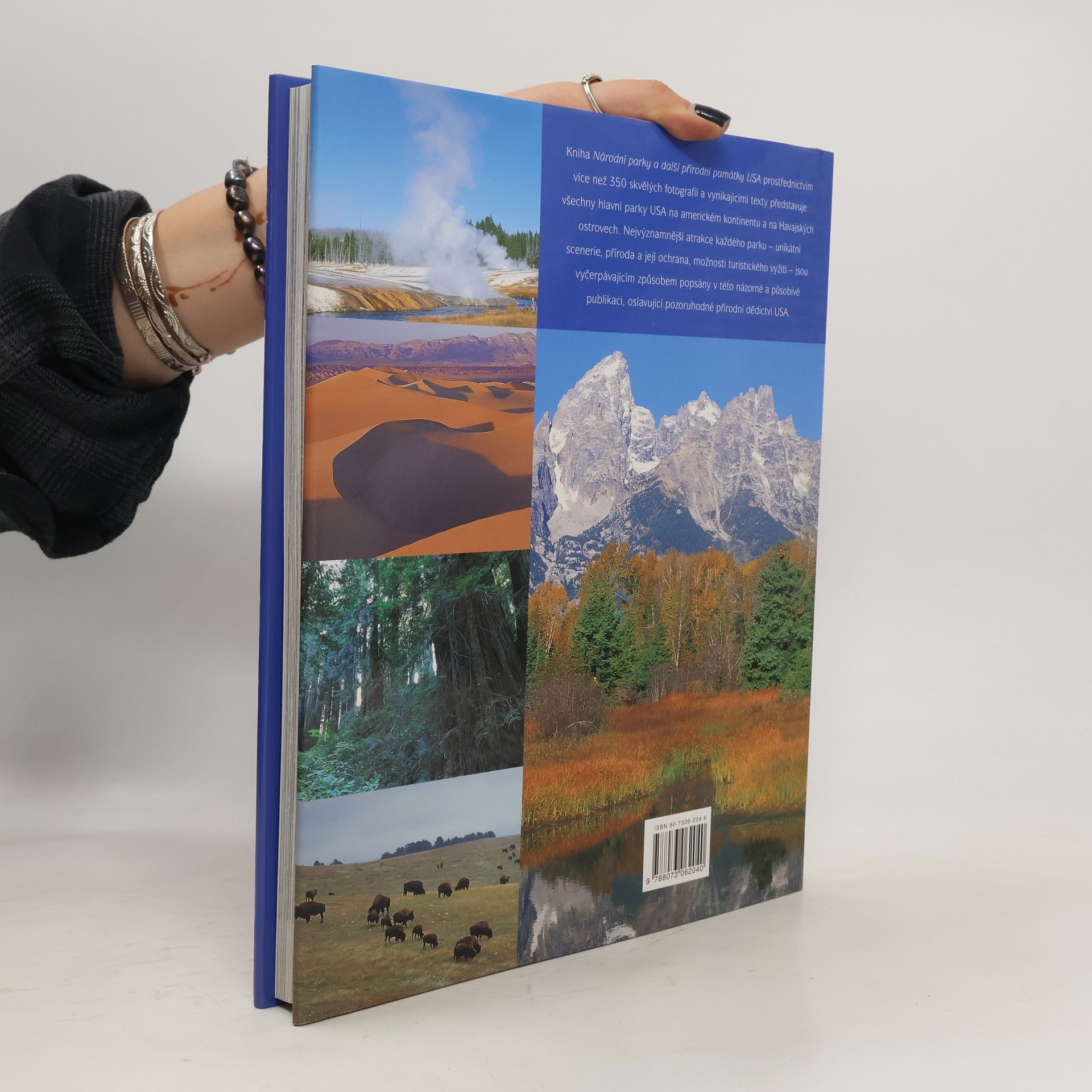 Spojené státy, čtvrtá největší země na světě, jsou plné přírodních superlativů. Na jejich území se nachází tři z pěti největších jezer, dlouhá horská pásma, rozsáhlé říční systémy, pouště, ledovcová pole, močály a nekonečné prérie. Přibližně osmina USA je chráněna jako národní parky a rezervace s původními lesy a divokou faunou, což je překvapivé pro ekonomicky rozvinutou zemi. Tyto parky chrání významné přírodní divy, jako je Grand Canyon, modré vrcholky Skalnatých hor a gejzíry v Yellowstone. Kniha je rozdělena do kapitol podle typu přírodního prostředí a geografické polohy. Nádherné fotografie a výstižný text popisují geologické podmínky, krajinu, zvířata a rostlinstvo každého parku. Obsahuje také praktické informace pro návštěvníky, včetně doporučení, kdy parky navštívit, dostupného vybavení a aktivit, jako je turistika, pozorování ptactva či rybaření. Publikace přibližuje krásu americké přírody a její vývoj, slouží jako ideální zdroj informací pro plánování cest, krásný suvenýr pro návštěvníky parků a zábavu pro ty, kteří "poznávají" cizí země z pohodlí domova.