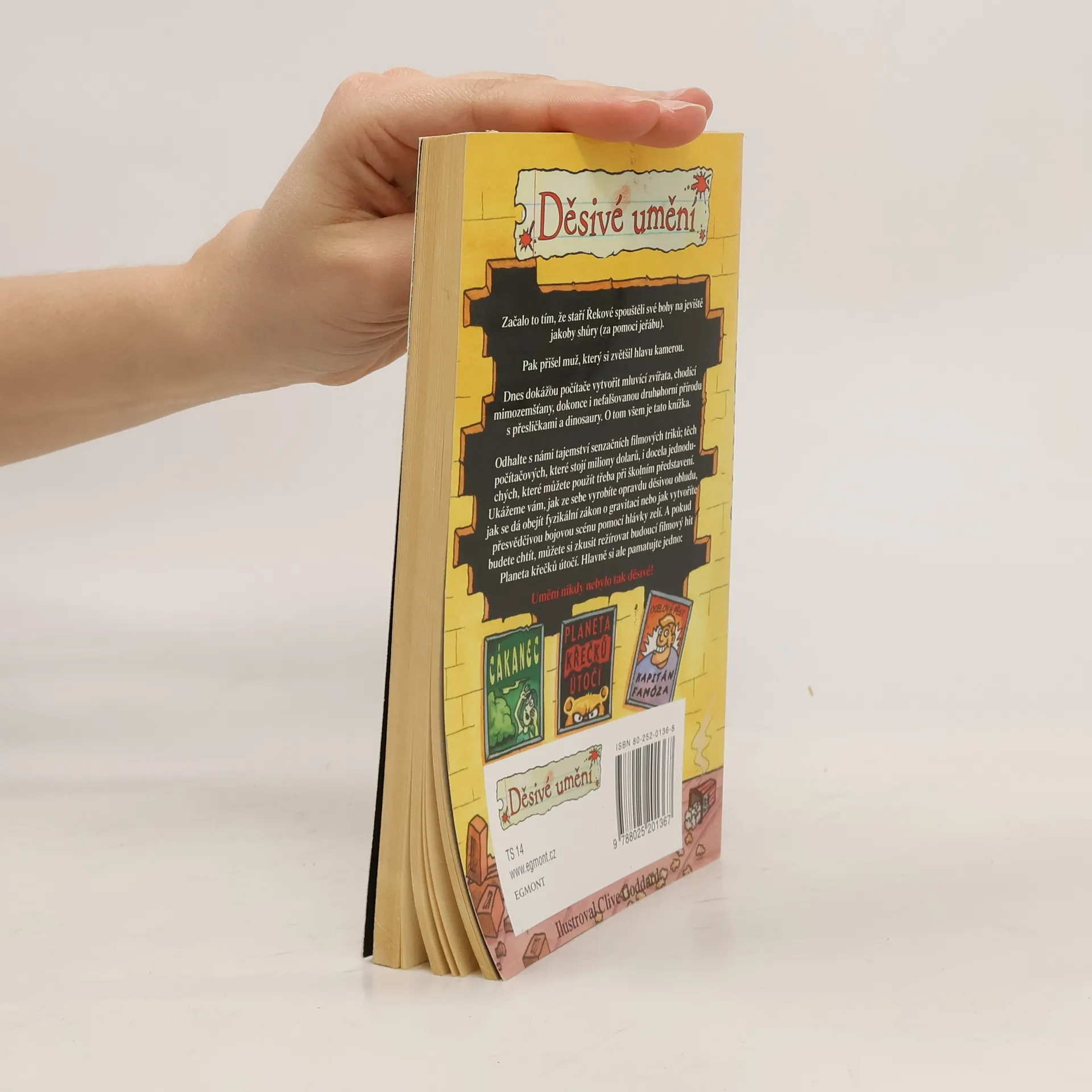 O čem se vám učitelé neodvažují říct. Tentokrát nám "děsivé umění" odhalí senzační tajemství filmových triků. Pro starší děti. Začalo to tím, že staří Řekové spouštěli své bohy na jeviště za pomoci jeřábu. Dnes dokážeme s pomocí počítače vytvořit chodící mimozemšťany, pravěké ještěry i útočící monstra. Kniha nám humornou formou, se spoustou zábavných obrázků, odhalí zákulisí počítačových triků a seznámí nás i s těmi docela jednoduchými, které použijeme třeba při školním představení.
