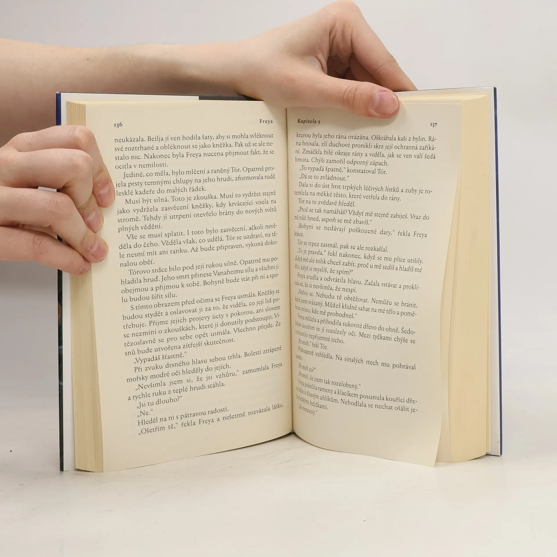 První kniha trilogie Sága z Valhally. Překrásná Freya, dcera královny Vanaheimu a nadaná čarodějka, se má jednou stát mocnou velekněžkou Bohyně. Její domovinu však napadne cizí kmen Ásů, kterému vládnou nelítostní a mocichtiví muži. Freya se zaplétá do diplomatické hry a je nucena bojovat nejen o své výsadní postavení, ale také o lásku muže, který by měl být jejím úhlavním nepřítelem. Aby smířila znepřátelené kmeny a přitom se nezpronevěřila svému srdci a přesvědčení, bude muset projít mnoha těžkými zkouškami a přinést i bolestné oběti. Švédská spisovatelka Johanne Hildebrandtová zpracovala prastarý severský mýtus o válce Ásů a Vánů do silného a napínavého příběhu, v němž se dávná ženská moudrost střetává s mužskou touhou po moci a láska s povinností. Zároveň nabízí zajímavý pohled do drsného přírodního života lidí doby bronzové, založený na výkladu archeologických nálezů.