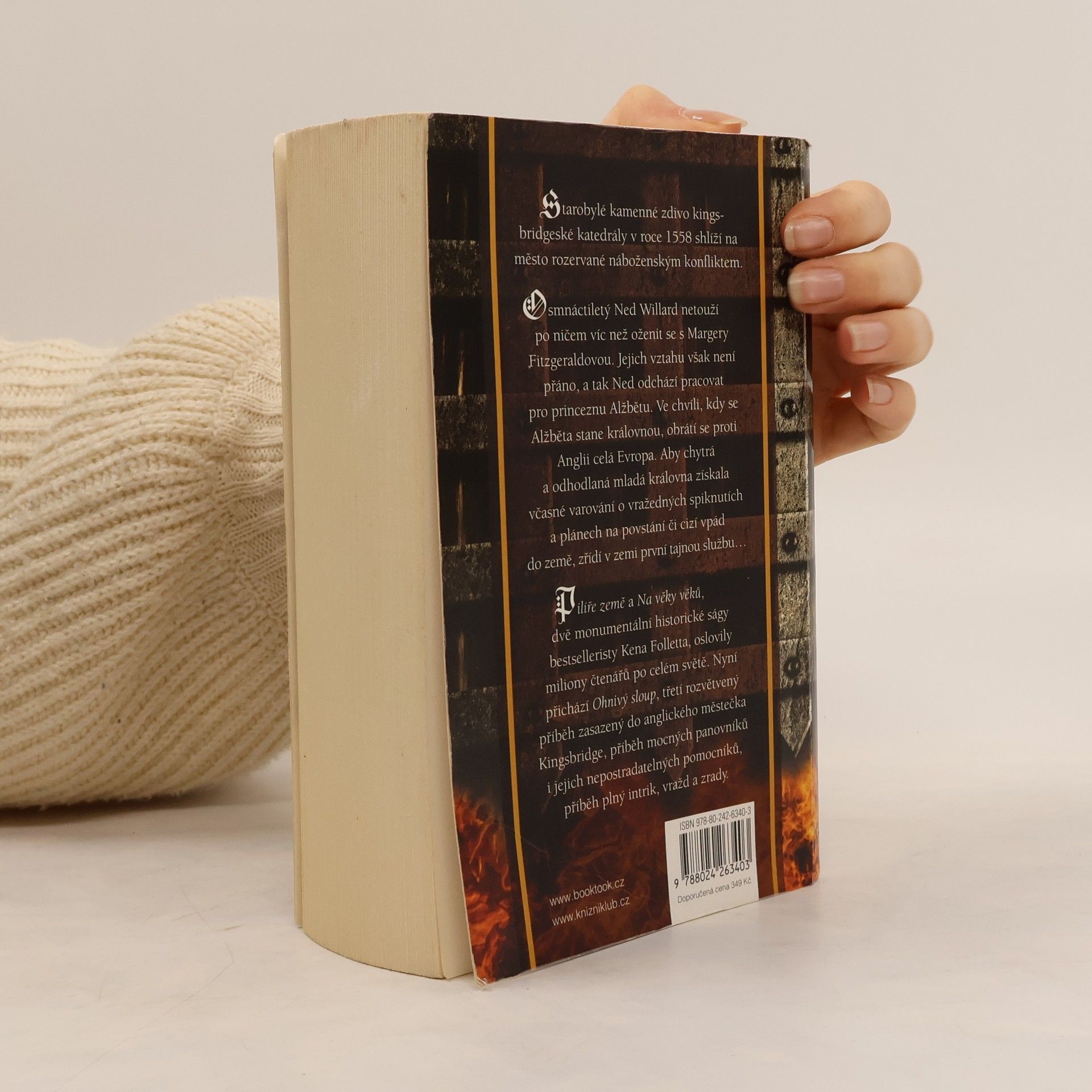 Po Pilířích země a Na věky věků, celosvětově oblíbených historických ságách od bestselleristy Kena Folletta, přichází Ohnivý sloup, třetí rozvětvený příběh zasazený do anglického městečka Kingsbridge, příběh mocných panovníků i jejich nepostradatelných pomocníků, příběh plný intrik, vražd a zrady, ale také lásky, přátelství a naděje. Píše se rok 1558 a Evropu sužují náboženské konflikty. Osmnáctiletý Ned Willard ale v tuto chvíli netouží po ničem jiném než oženit se s Margery Fitzgeraldovou. Jejich vztahu však není přáno, a tak Ned odchází pracovat pro princeznu Alžbětu. Ve chvíli, kdy se Alžběta stane královnou, obrátí se proti Anglii celá Evropa. Chráněná oddanou skupinou nápaditých špehů a odvážných tajných agentů lpí na svém trůnu i zásadách. Skutečný boj totiž staví ty, kdo věří v toleranci a kompromis, proti tyranům, kteří všem ostatním vnucují své názory – ať to stojí cokoli…