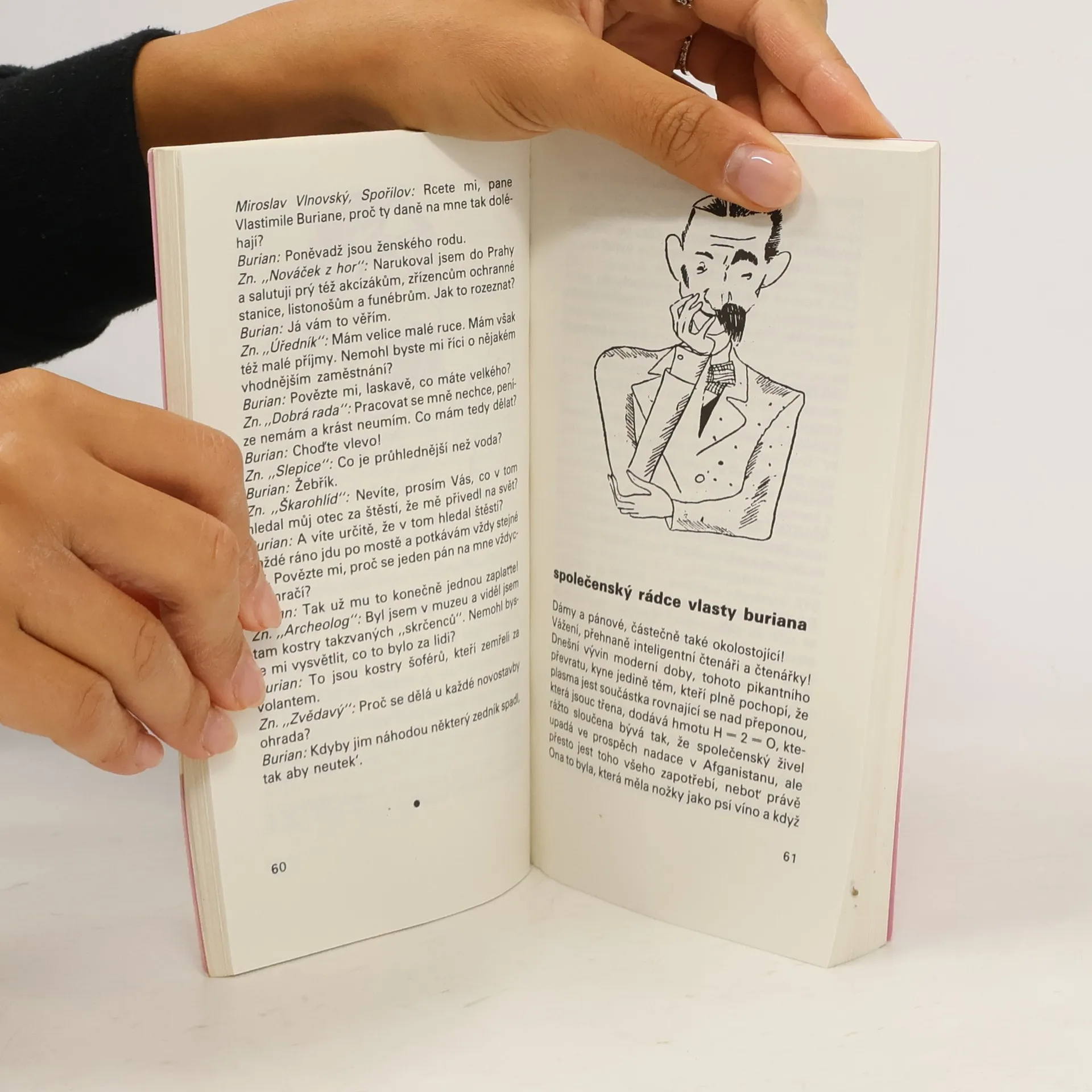 Úryvky z Burianových knih, frašek, aktovek, texty písní, články a anekdoty doplněné málo známými fakty ze života.