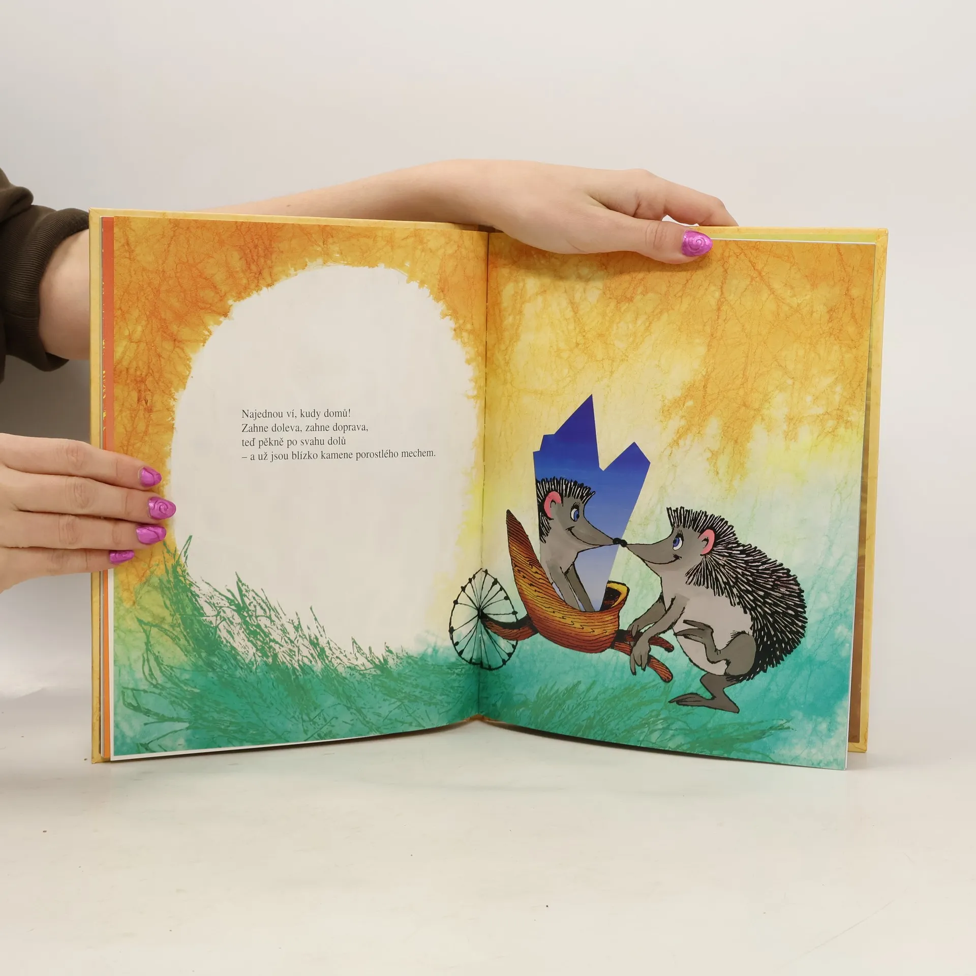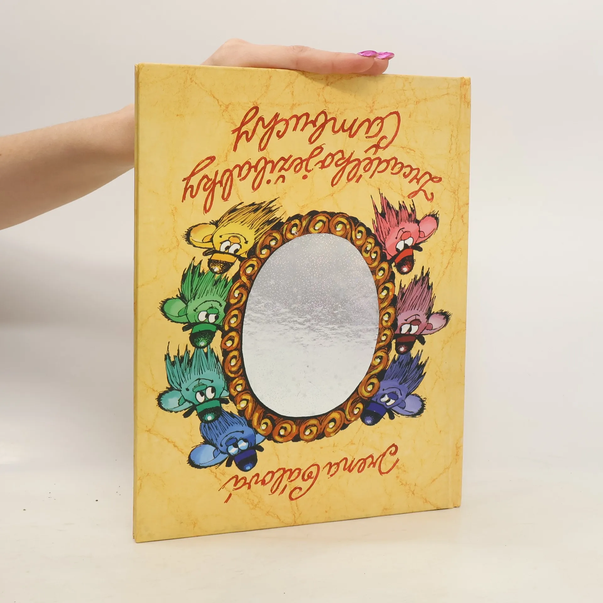 Duhově se třpytí na obálce knihy – i vy se v něm můžete vidět! Kromě toho se dozvíte, co se stane, když sedm trpaslíčků sní jednu obrovskou čokoládu. A co se stane, když ježibabka Čambucha své zrcadélko darované z lásky praští o kámen (jen proto, že v něm nevidí krasavici). V čarodějnickém světě rozbít zrcadlo znamená sedm roků neštěstí. Zato lesním tvorečkům přinášely blýskavé střípky jenom štěstí. Pro jednoho byl střípek stříbrnou klouzačkou, pro druhého měsíčním okem, pro dalšího denní hvězdou… A co Čambucha? Po sedmi letech se šťastně vdála a narodilo se jí ježibejbátko.