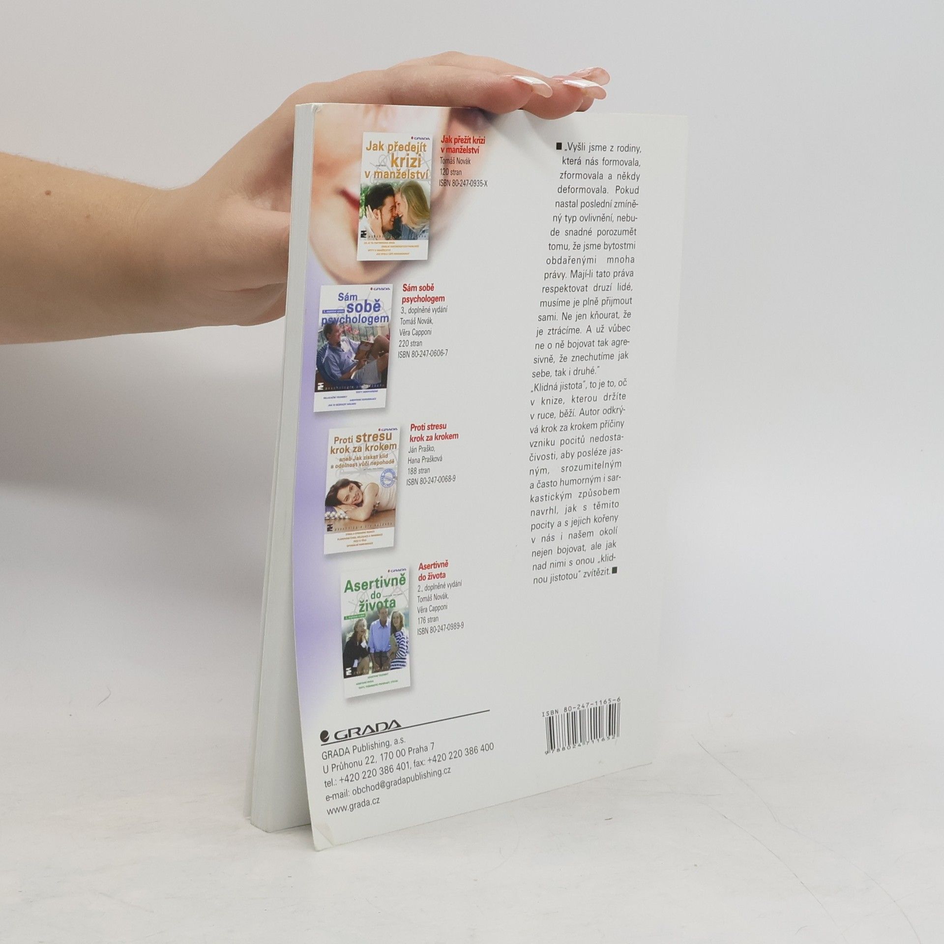 "Vyšli jsme z rodiny, která nás formovala, zformovala a někdy deformovala. Pokud nastal poslední zmíněný typ ovlivnění, nebude snadné porozumět tomu, že jsme bytostmi obdařenými mnoha právy. Mají-li tato práva respektovat druzí lidé, musíme je plně přijmout sami. Ne jen kňourat, že je ztrácíme. A už vůbec ne o ně bojovat tak agresivně, že znechutíme jak sebe, tak i druhé." "Klidná jistota", to je to, oč v knize, kterou držíte v ruce, běží. Autor odkrývá krok za krokem příčiny vzniku pocitů nedostačivosti, aby posléze jasným, srozumitelným a často humorným i sarkastickým způsobem navrhl, jak s těmito pocity a s jejich kořeny v nás i našem okolí nejen bojovat, ale jak nad nimi s onou "klidnou jistotou" zvítězit.... celý text