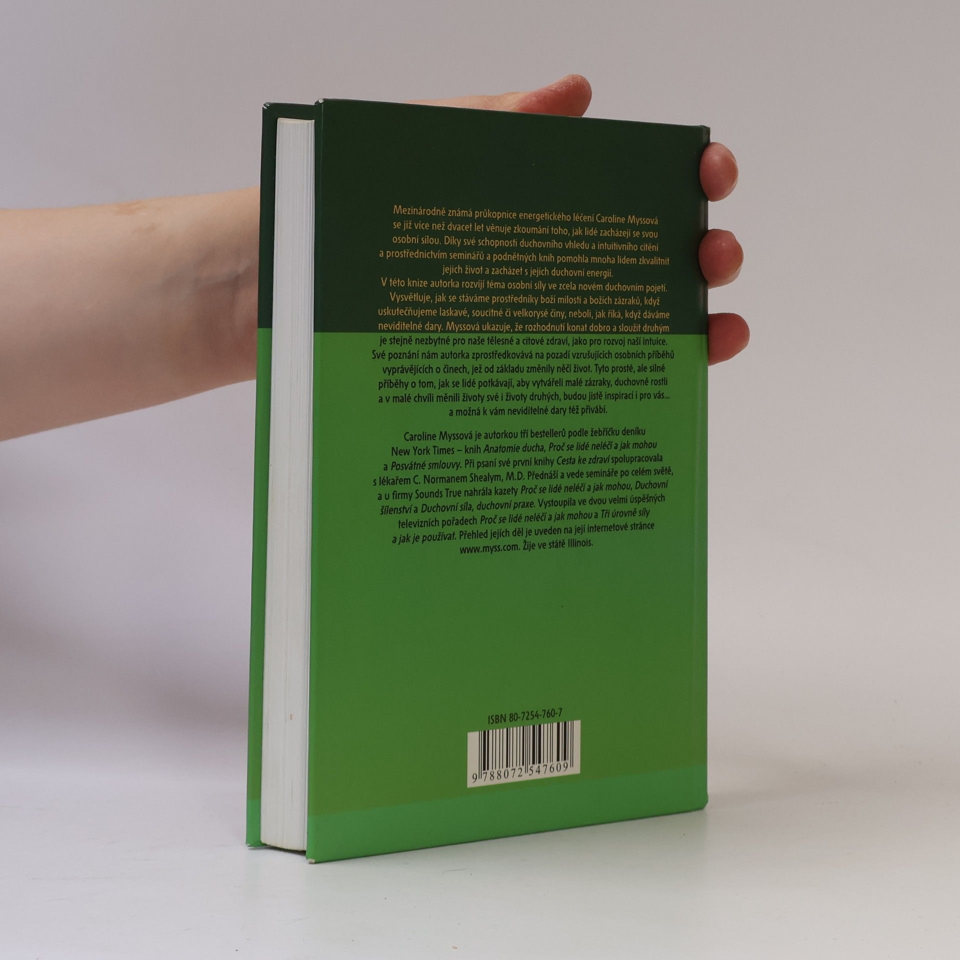 Mezinárodně známá průkopnice energetického léčení Caroline Myssová se již více než dvacet let věnuje zkoumání toho, jak lidé zacházejí se svou osobní silou. Díky své schopnosti duchovního vhledu a intuitivního cítění a prostřednictvím seminářů a podnětných knih pomohla mnoha lidem zkvalitnit jejich život a zacházet s jejich duchovní energií. V této knize autorka rozvíjí téma osobní síly ve zcela novém duchovním pojetí. Vysvětluje, jak se stáváme prostředníky boží milosti a božích zázraků, když uskutečňujeme laskavé, soucitné či velkorysé činy, neboli, jak říká, když dáváme neviditelné dary. Myssová ukazuje, že rozhodnutí konat dobro a sloužit druhým je stejně nezbytné pro naše tělesné a citové zdraví, jako rozvoj naší intuice. Své poznání nám autorka zprostředkovává na pozadí vzrušujících osobních příběhů vyprávějících o činech, jež od základu změnily něčí život. Tyto prosté, ale silné příběhy o tom, jak se lidé potkávají, aby vytvářeli malé zázraky, duchovně rostli a v malé chvíli měnili životy své i životy druhých, budou jistě inspirací i pro vás... a možná k vám neviditelné dary též přivábí.