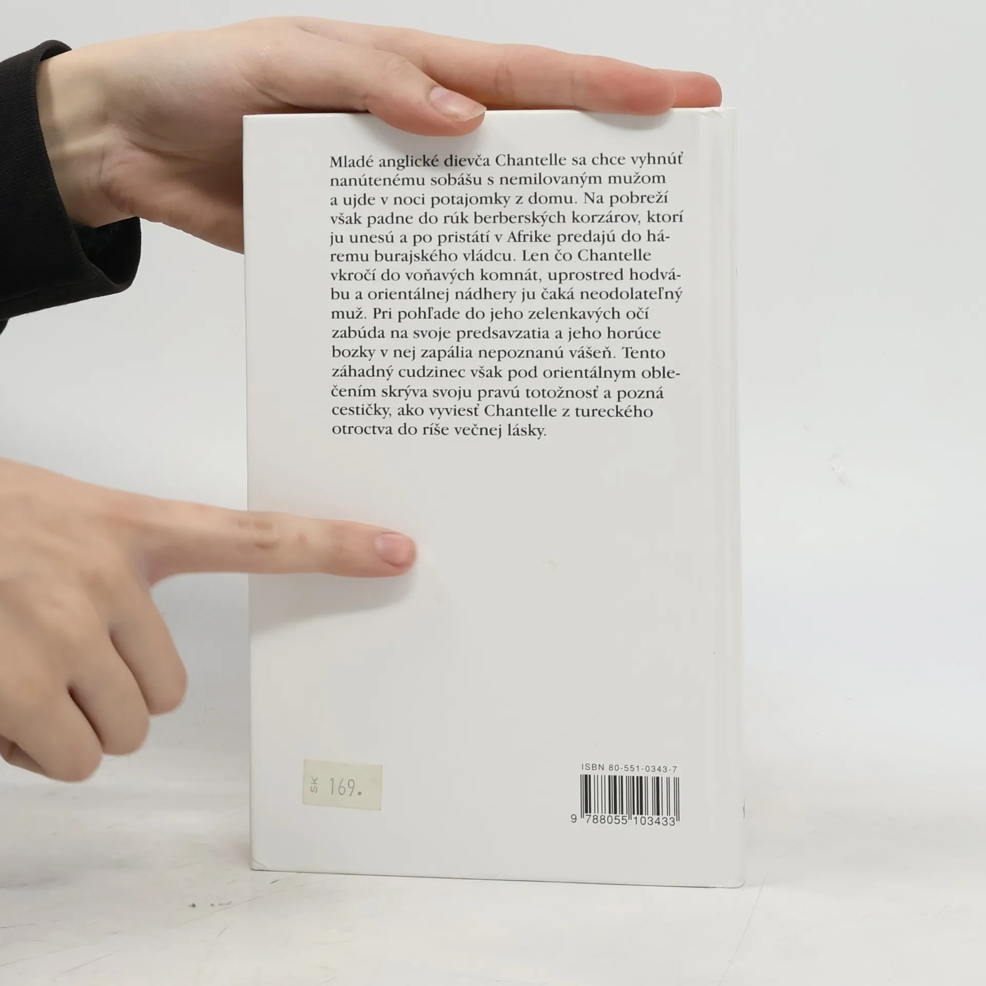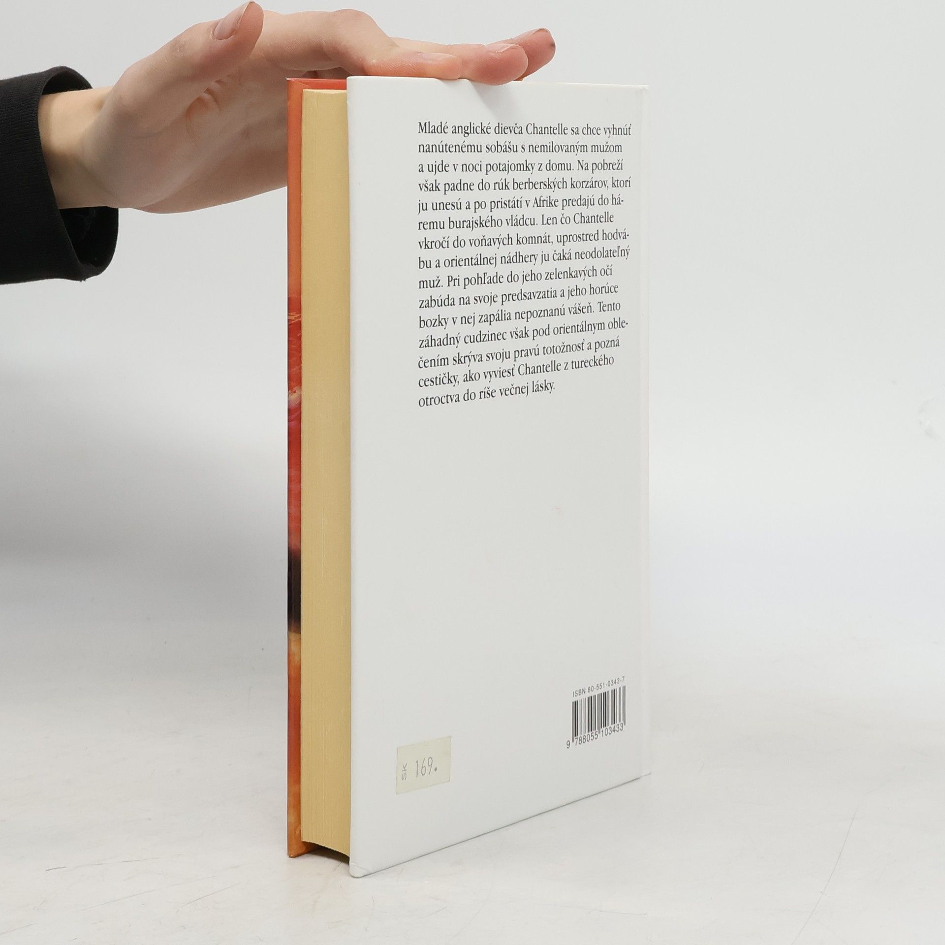 Mladé anglické dievča Chantelle sa chce vyhnúť nanútenému sobášu s nemilovaným mužom a ujde v noci potajomky z domu. Na pobreží však padne do rúk berberských korzárov, ktorí ju unesú a po pristátí v Afrike predajú do háremu burajského vládcu. Len čo Chantelle vkročí do voňavých komnát, uprostred hodvábu a orientálnej nádhery ju čaká neodolateľný muž. Pri pohľade do jeho zelenkavých očí zabúda na svoje predsavzatia a jeho horúce bozky v nej zapália nepoznanú vášeň. Tento záhadný cudzinec však pod orientálnym oblečením skrýva svoju pravú totožnosť a pozná cestičky, ako vyviesť Chantelle z tureckého otroctva do ríše večnej lásky.