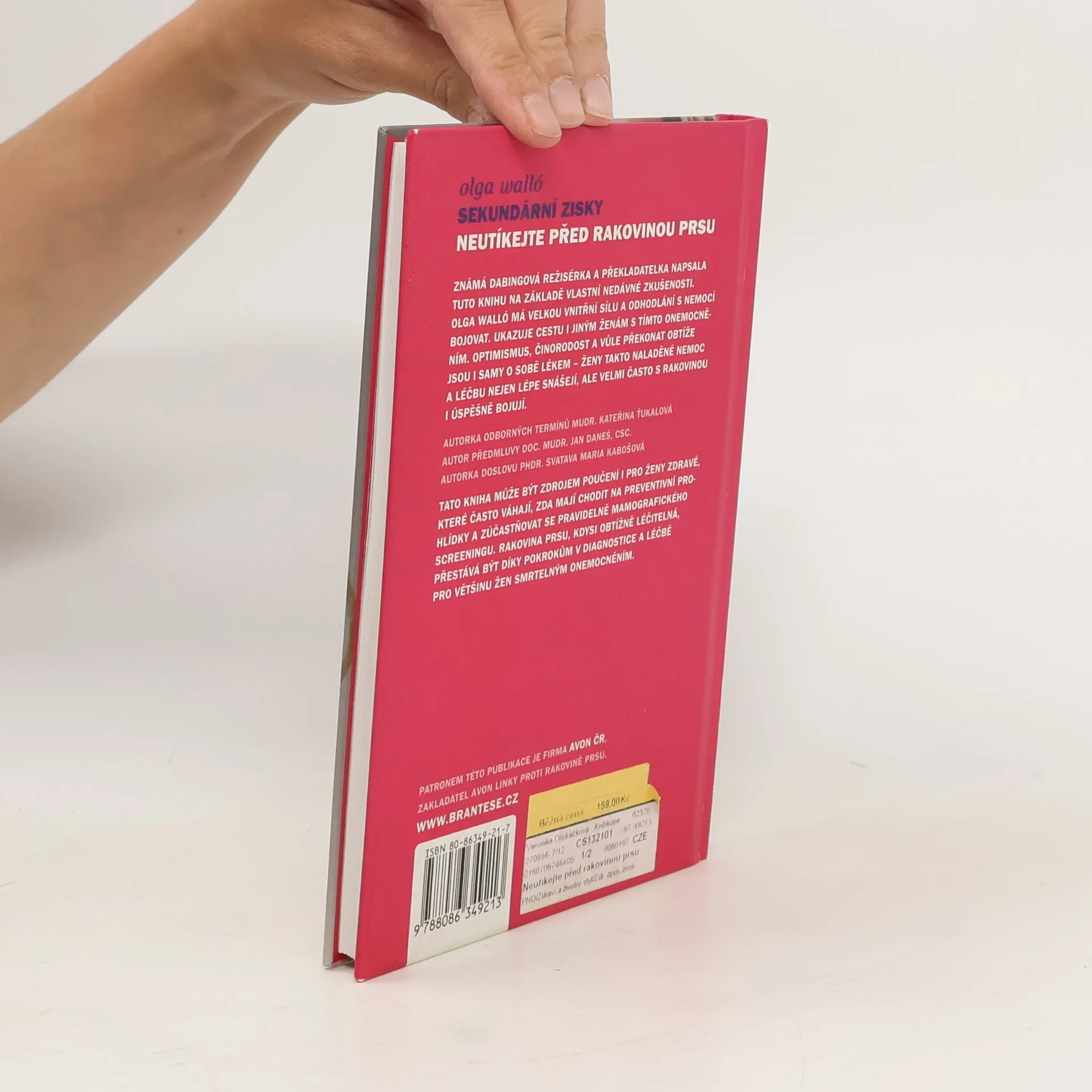 Známá dabingová režisérka a překladatelka napsala tuto knihu na základě vlastní nedávné zkušenosti. Olga Walló má velkou vnitřní sílu a odhodlání s nemocí bojovat. Ukazuje cestu i jiným ženám s tímto onemocněním. Optimismus, činorodost a vůle překonat obtíže jsou i samy o sobě lékem - ženy takto naladěné nemoc a léčbu nejen lépe snášejí, ale velmi často s rakovinou i úspěšně bojují. Tato kniha může být zdrojem poučení i pro ženy zdravé, které často váhají, zda mají chodit na preventivní prohlídky a zúčastňovat se pravidelně mamografického screeningu. Rakovina prsu, kdysi obtížně léčitelná, přestává být díky pokrokům v diagnostice a léčbě pro většinu žen smrtelným onemocněním.