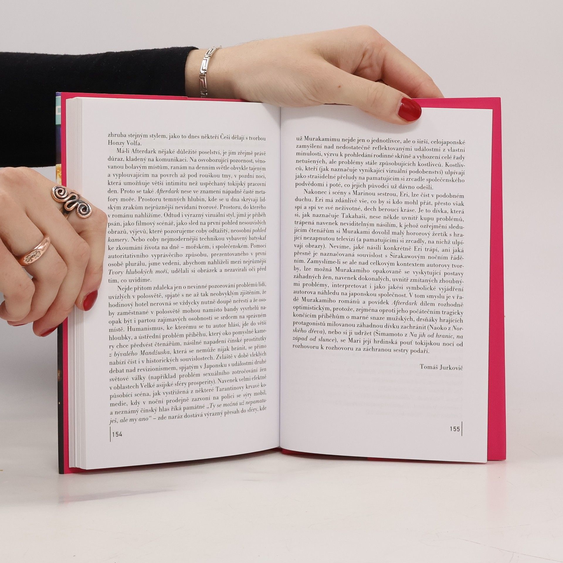 Před očima nám leží město… Jen za docela malou chvilku se má změnit datum. Je těsně před půlnocí. Chvíle mezi dvěma dny. Mezidní. Pozorujeme město jako obrovské zvíře. Pozorujeme Mari, sedí v restauraci a čte si. Pozorujeme její krásnou sestru Eri, jak spí v nekonečném spánku… Příběh ze současného Tokia se odehrává, jak už název napovídá, po setmění, během jediné noci. Kapitoly jsou napsány stylem filmového scénáře a u každé z nich je uveden přesný časový údaj. Dějová linie je pro autora typická, střídají se tu dva paralelní, navzájem se prolínající příběhy. Nezvyklí jsou tentokrát hrdinové: žádný slušně situovaný muž v nejlepších letech, ani outsider, žádná ich-forma, ale dvě sestry a vševědoucí vypravěč první osoby množného čísla. Devatenáctiletá Mari, která umí čínsky, je kontaktována manažerkou hodinového hotelu, aby jí pomohla vyřešit případ brutálně zbité čínské prostitutky. Její sestra se vlivem tajemných sil ocitla v jakémsi nejasném a nebezpečném snu, v ohraničeném anonymním prostoru. V průběhu noci, ještě než přichází ráno, se věci dávají do pohybu, mění svůj charakter a skupenství. Něco se v hrdinech mění, něco se mění v nás... Afterdark, autorův čtvrtý román vycházející v češtině, nabízí napínavý, psychologicky i detektivně laděný příběh s fantaskními a hororovými prvky. A také dynamický styl sekvence, kdy realitu vnímáme očima kamery. Murakami decentně a úsporně rozvíjí čtenářovo očekávání.
