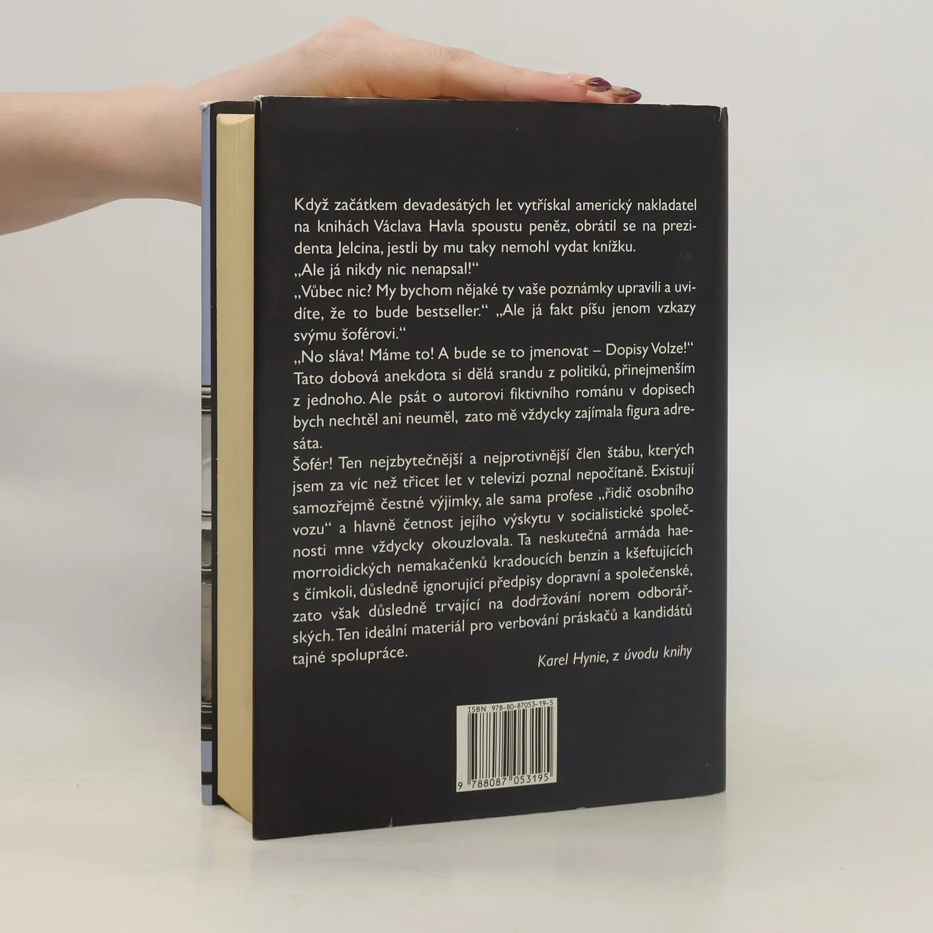Autor pracoval od začátku 70. let takřka 40 let v České televizi jako produkční a tuto zkušenost s televizním prostředím zúročuje ve svém románu Volha. Z drobných vyprávění hlavního vypravěče – řidiče volhy, „panského kočího“ Standy Pekárka zde postupně vyvstává zvláštní svět tohoto podniku, stojícího jakožto nástroj ideologického působení v popředí zájmu každého režimu. Zajímavý a zábavný román, napsaný neobyčejně bizardním, přesně odposlechnutým jazykem, je však především portrétem hlavního hrdiny, člověka, zajímajícího se pouze o ženské a fotbal, omezeného egocentrika, který vyniká ve vymýšlení drobných podvodů a triků, jak si nakrást benzín, vykázat větší množství ujetých kilometrů, podvést manželku a jenž se nevyhnutelně se stává rovněž spolupracovníkem StB. Hynie sleduje ovšem jeho osudy i po sametové revoluci a shledává, že se Pekárkova přizpůsobivá a sobecká povaha dobře uplatní vlastně kdykoliv.