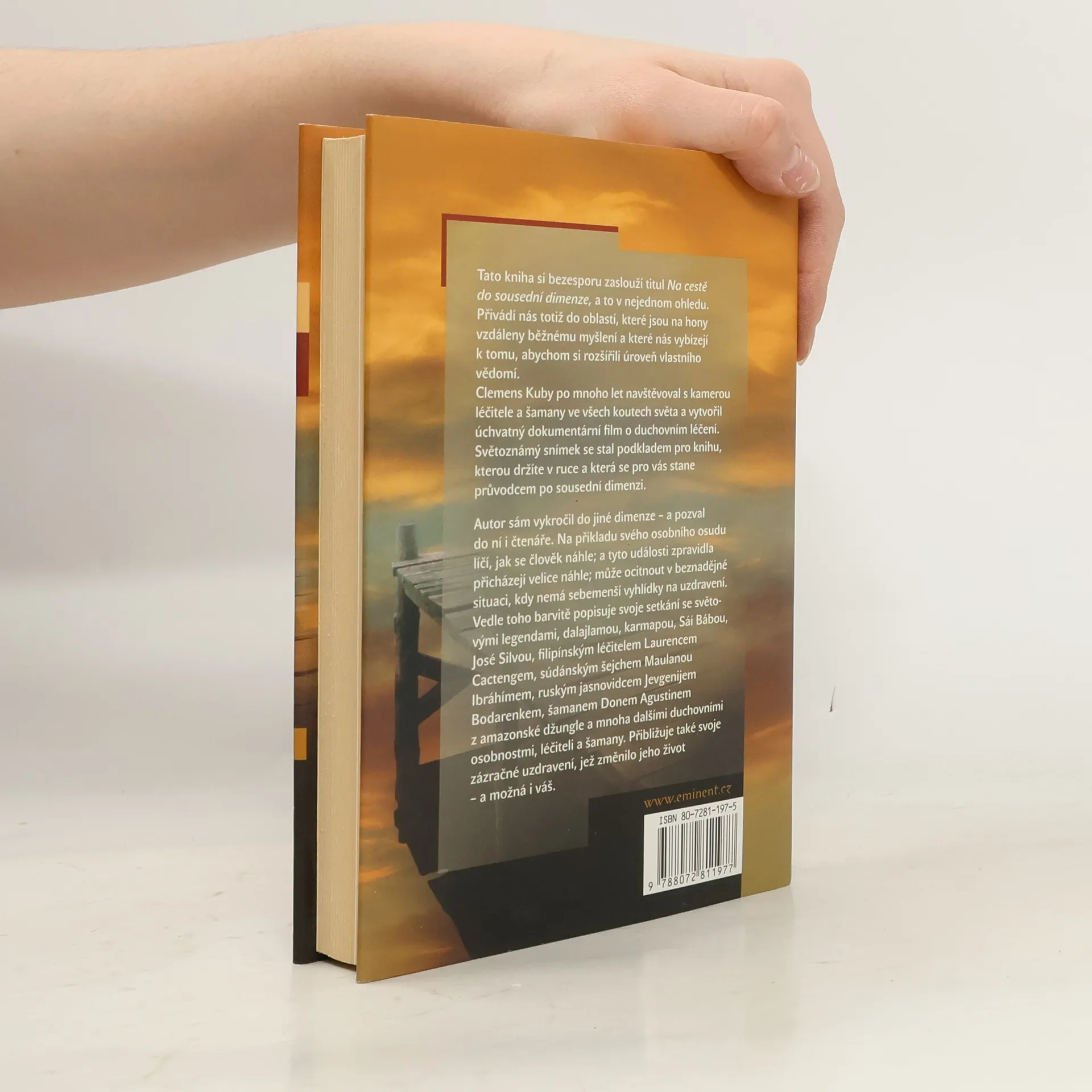 Tato kniha si bezesporu zaslouží titul Na cestě do sousední dimenze, a to v nejednom ohledu. Přivádí nás totiž do oblastí, které jsou na hony vzdáleny běžnému myšlení a které nás vybízejí k tomu, abychom si rozšířili úroveň vlastního vědomí. Clemens Kuby po mnoho let navštěvoval s kamerou léčitele a šamany ve všech koutech světa a vytvořil úchvatný dokumentární film o duchovním léčení. Snímek se stal podkladem pro knihu, kterou držíte v ruce a která se pro vás stane průvodcem po sousední dimenzi. Autor sám vykročil do jiné dimenze – a pozval do ní i čtenáře. Na příkladu svého osobního osudu líčí, jak se člověk náhle; a tyto události zpravidla přicházejí velice náhle; může ocitnout v beznadějné situaci, kdy nemá sebemenší vyhlídky na uzdravení. Vedle toho barvitě popisuje svoje setkání se světovými legendami, dalajlamou, karmapou, Sáí Bábou, José Silvou, filipínským léčitelem Laurencem Cactengem, súdánským šejchem Maulanou Ibráhímem, ruským jasnovidcem Jevgenijem Bodarenkem, šamanem Donem Agustinem z amazonské džungle a mnoha dalšími duchovními osobnostmi, léčiteli a šamany. Přibližuje také svoje zázračné uzdravení, jež změnilo jeho život –a možná i váš. Součástí knihy je zajímavá fotografická příloha.