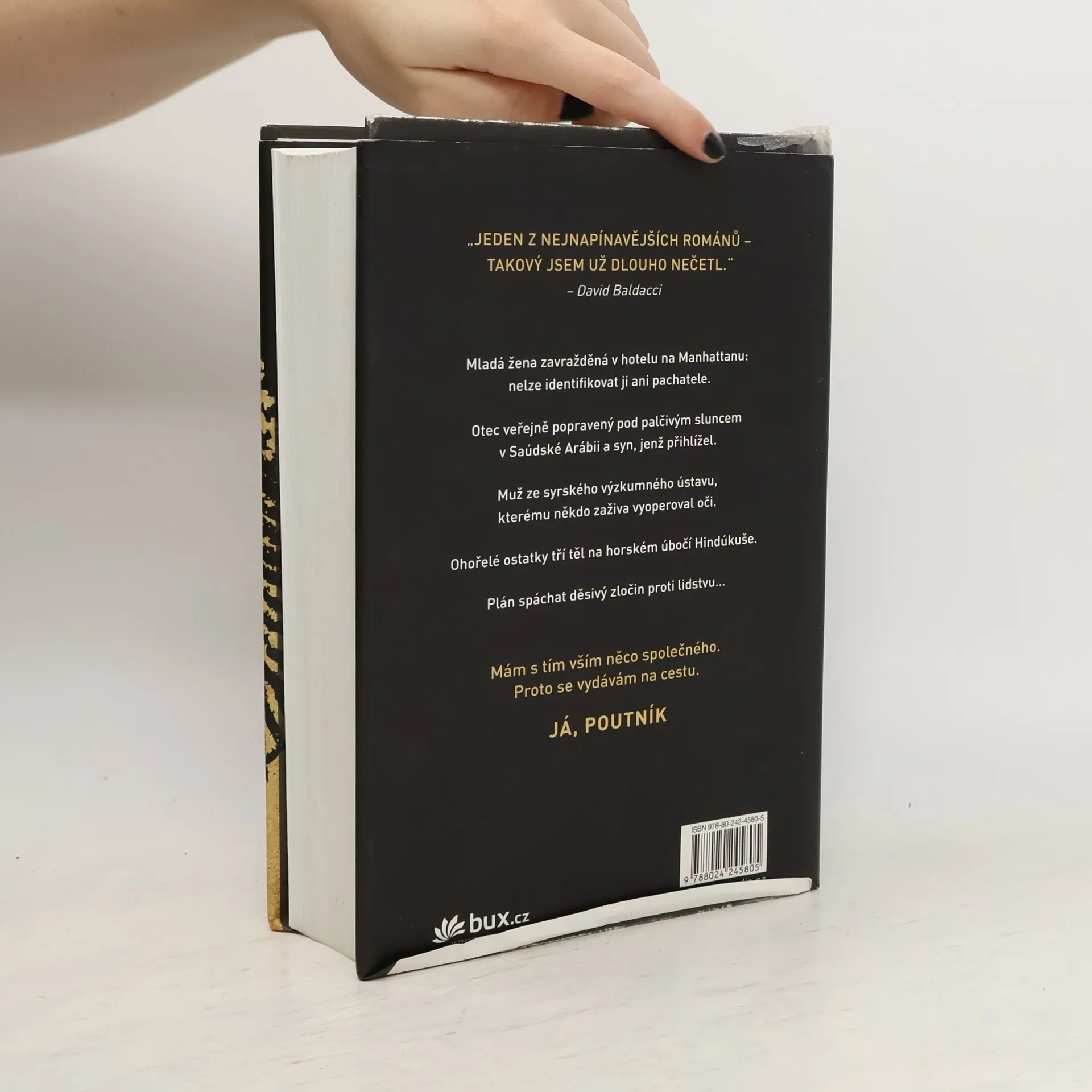 Mladá žena zavražděná v hotelu na Manhattanu – nelze identifikovat ji ani pachatele. Otec veřejně sťatý pod palčivým sluncem v Saúdské Arábii a syn, jenž přihlížel. Muž ze syrského výzkumného ústavu, kterému někdo zaživa vyoperoval oči. Ohořelé ostatky tří těl na horském úbočí Hindúkuše. Plán spáchat děsivý zločin proti lidstvu… Mám s tím vším něco společného. Proto se vydávám na cestu. Já, Poutník. „Jediný thriller, který si letos musíte přečíst.“ – The Guardian