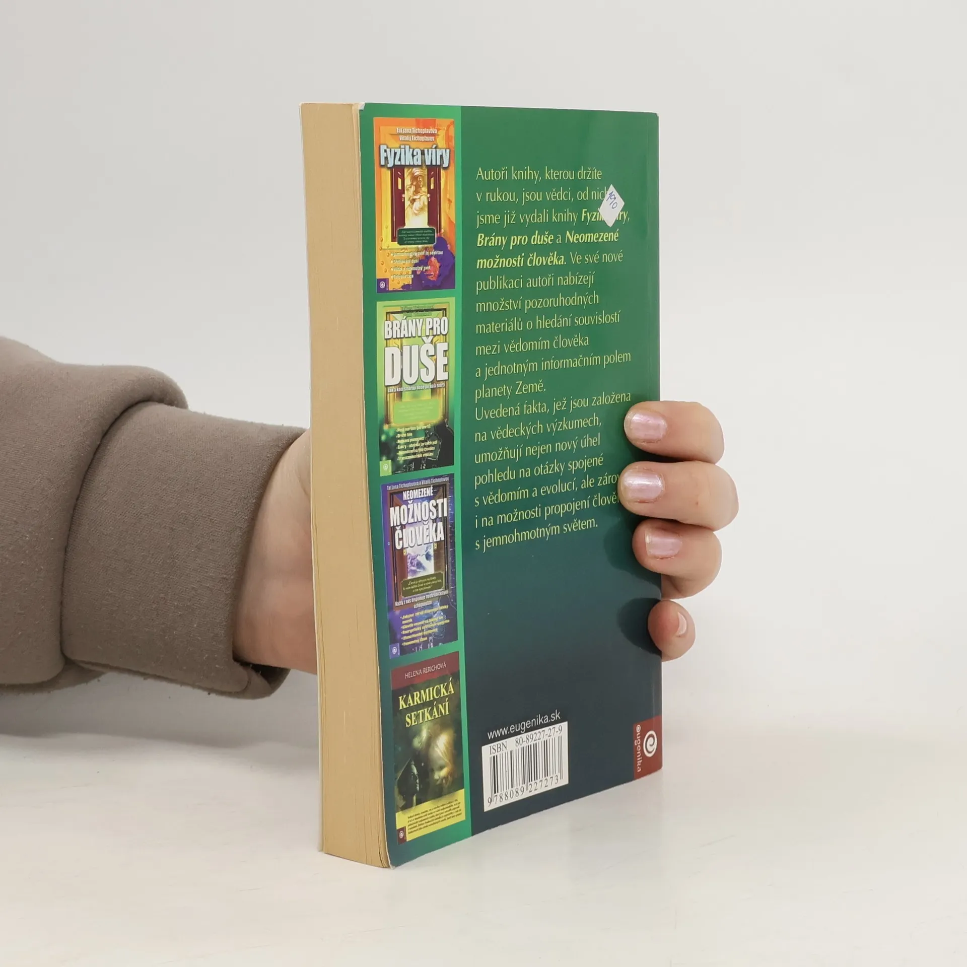 Ve své knize autoři nabízejí množství pozoruhodných materiálů o hledání souvislostí mezi vědomím člověka a jednotným informačním polem planety země. Uvedená fakta, jež jsou založena na vědeckých výzkumech, umožňují nejen nový úhel pohledu na otázky spojené s vědomím a evolucí, ale zároveň i na možnosti propojení člověka s jemnohmotným světem. ISBN 978-80-89227-27-3 je chybné