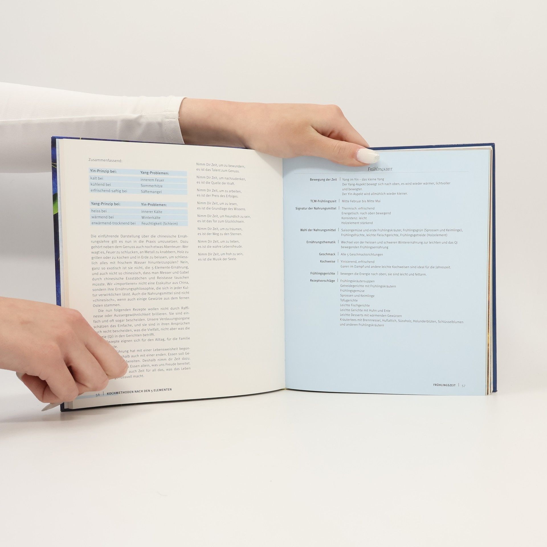 Nach der 5-Elemente-Ernährung hat jedes Lebensmittel eine bestimmte Energetik, das heisst eine bestimmte Temperatur, einen bestimmten Geschmack und eine bestimmte Wirkungsrichtung. Das Ziel einer gesunden und gesund erhaltenden Ernährung ist, durch die richtige Wahl und Zubereitung der Gerichte ein harmonisches Gleichgewicht zu schaffen. Das Buch erklärt ausführliche die Grundlagen der 5-Elemente-Ernährung und zeigt in 60 attraktiven, leicht nachkochbaren Rezepten, wie sich diese in der westlichen Küche umsetzen lässt. Mit detaillierten Informationen zur Wirkung des ganzen Gerichts und zu einzelnen Zutaten und mit umfangreichen Tabellen zum Nachschlagen. Ein Grundlagen- und Kochbuch zur 5-Elemente-Ernährung.