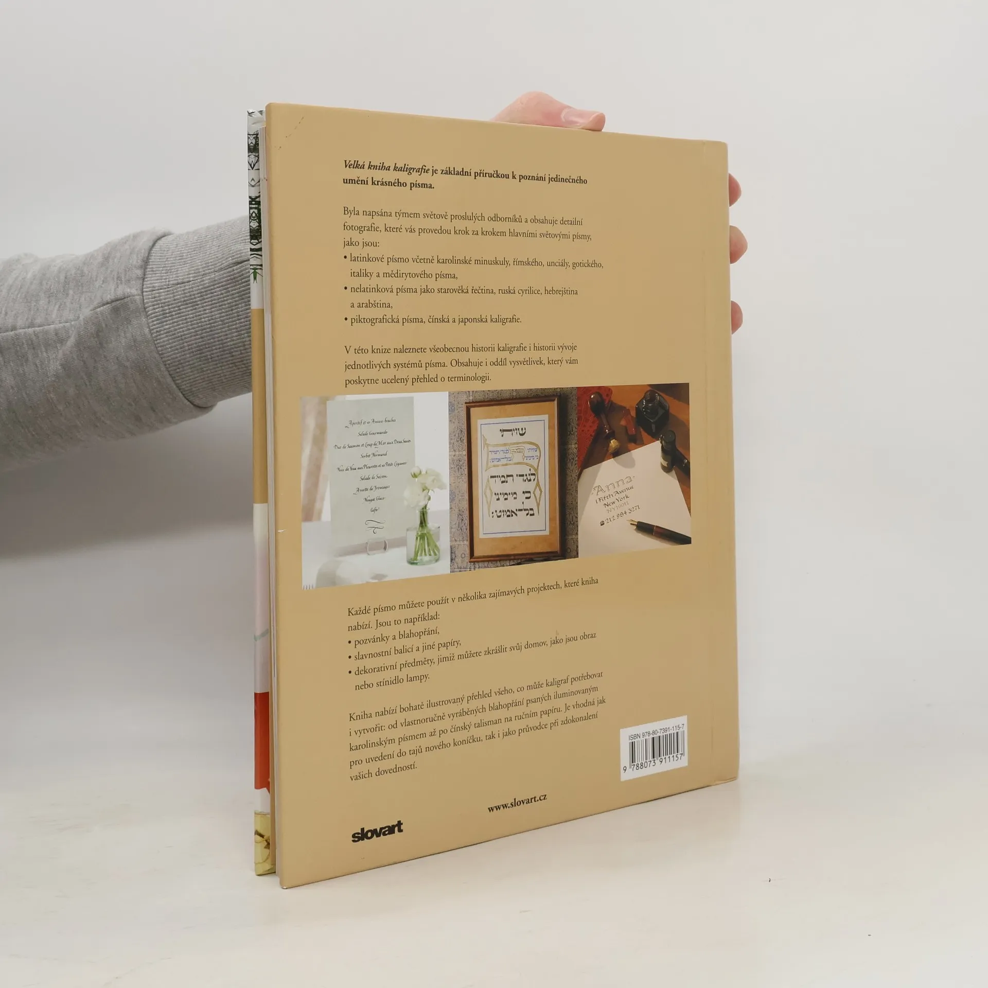 Základní ilustrovaná příručka k poznání jedinečného umění krásného písma. Zahrnuje všeobecnou historii kaligrafie i historii vývoje jednotlivých systémů písma. Obsahuje i oddíl vysvětlivek, který vám poskytne ucelený přehled o terminologii. Byla napsána týmem světově proslulých odborníků a je vhodná jak pro uvedení do tajů nového koníčku, tak i jako průvodce při zdokonalení dovedností.