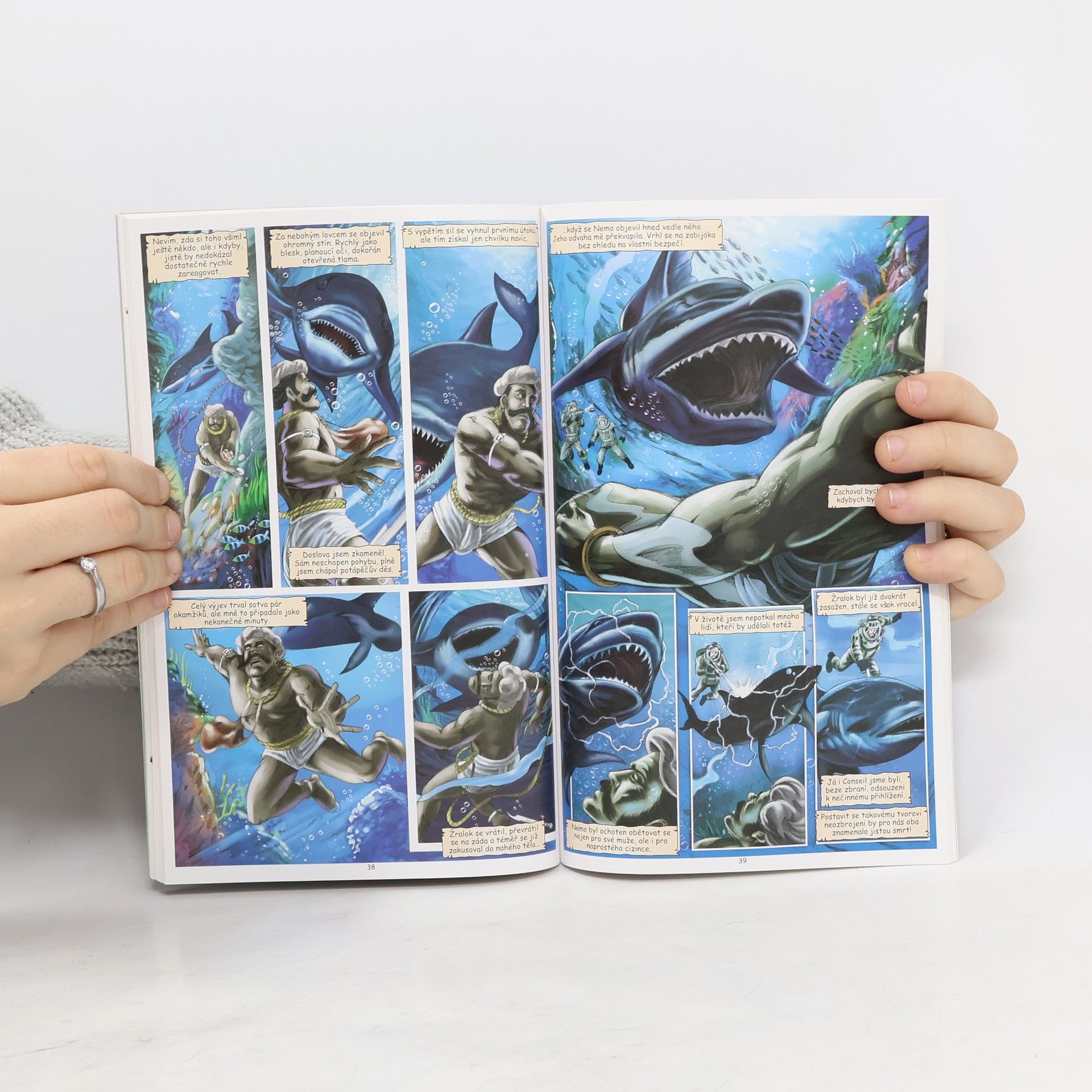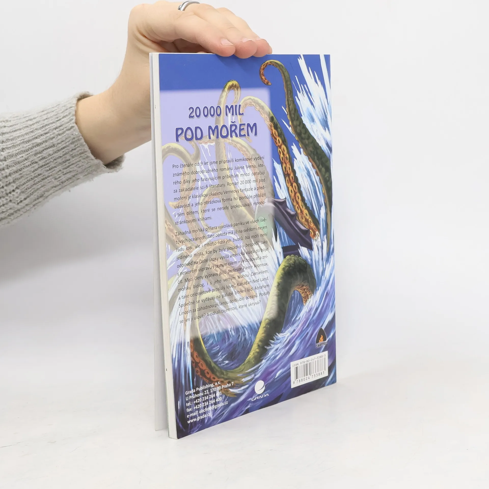 Pro čtenáře od 9 let jsme připravili komiksové vydání známého dobrodružného románu Julese Verna, kterého díky jeho fascinujícím příběhům mnozí označují za zakladatele sci-fi literatury. Román 20 000 mil pod mořem je klasickou ukázkou Verneovy fantazie a předvídavosti a jeho obrázková forma ho pomůže přiblížit i těm dětem, které se nerady prokousávají mnohostránkovými knihami. Záhadná mořská příšera vyvolává paniku ve všech světových oceánech. Tato obluda má již na svědomí nejen řadu lodí, ale i mnoho lidských životů. Na moři není jediného místa, kde by byly posádky v bezpečí! Jako odpověď na časté útoky vysílá americká vláda do boje s netvorem výpravu s jasným cílem - vystopovat a zničit. Mezi členy výpravy jsou profesor Pierre Aronnax, mořský biolog, i s jeho věrným sluhou Conseilem, a také celosvětově pro-slulý lovec, Kanaďan Ned Land. Společně se vydávají na palubě bitevní lodi Abraham Lincoln za záhadnou příše-rou do hlubin oceánů. Podaří se jim ji ulovit? A odhalí tajemství, které ukrývá?