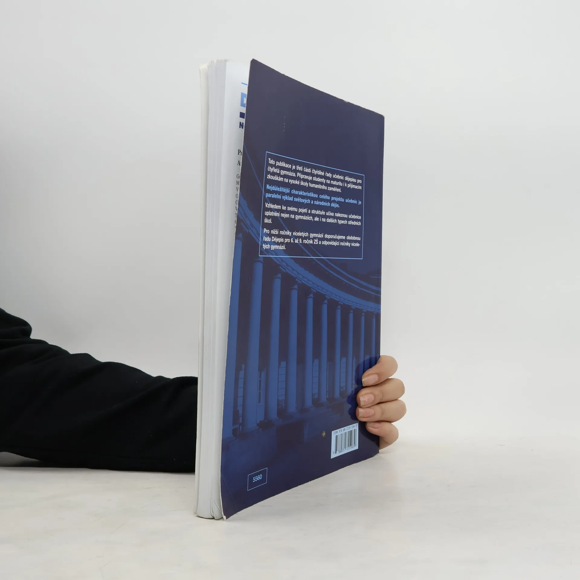Třetí z řady učebnic dějepisu pro gymnázia a střední školy – uplatní se především na gymnáziích, ale i na dalších typech škol, neboť je v učebnicích graficky odlišen základní výklad od rozšiřujícího textu. Vzhledem k rozvržení učiva s důrazem na nové dějiny umožňuje i dobrou přípravu na VŠ. Kladem řady je její nepřetíženost fakty a především paralelně vedený výklad světových i českých dějin od nejstarších dob po současnost. Učebnice obsahují bohatý obrazový materiál, početné dějepisné mapy a náležitý didaktický aparát. Přední východ ●., Egypt ●., starověké Řecko ●., starověký Řím ●., Indie ●., Čína