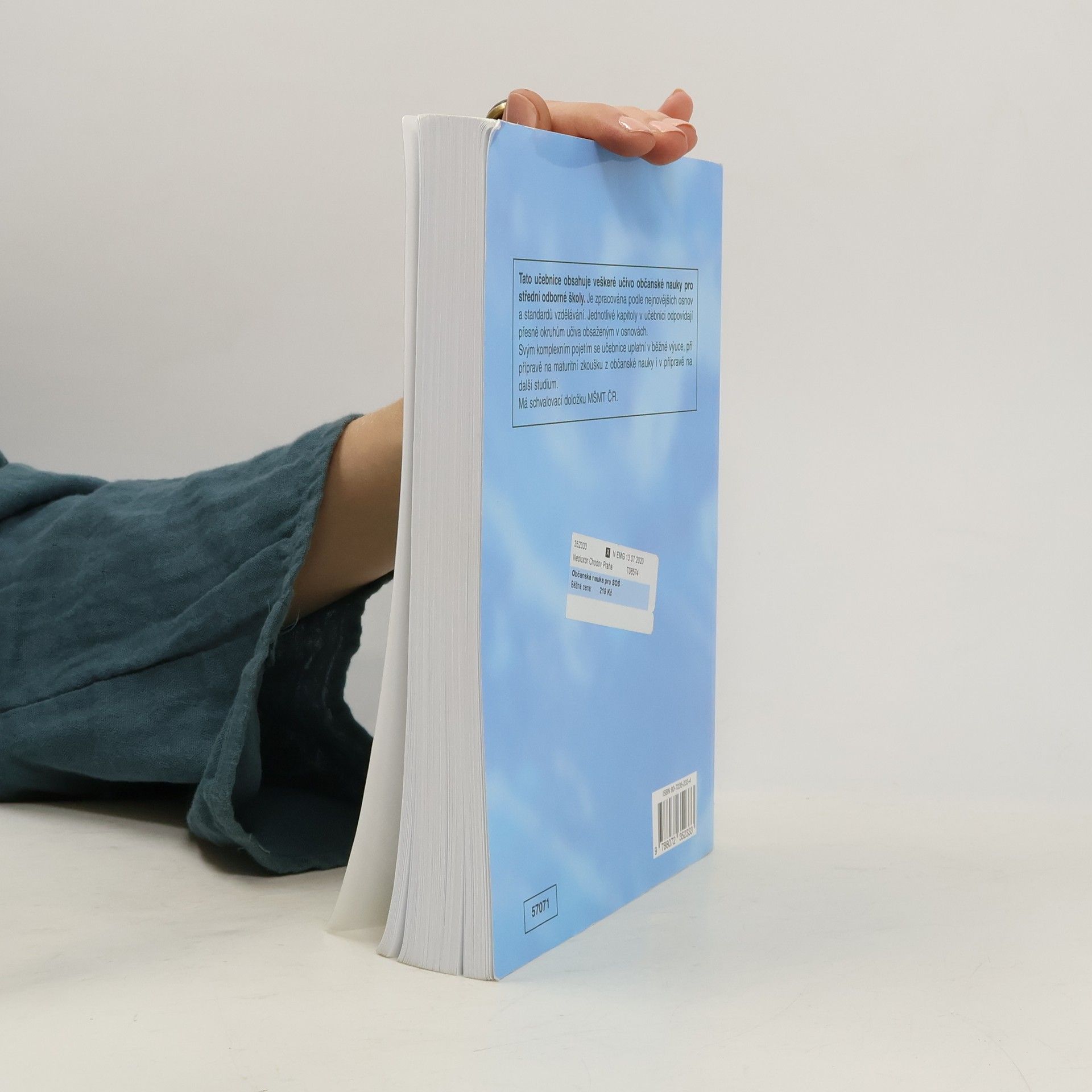 Obsahuje v jednom díle veškeré učivo předepsané nejnovějšími osnovami pro občanskou nauku SOŠ. Jednotlivé kapitoly přesně korespondují s konkrétními oddíly osnov. To umožňuje, aby jejich pořadí ve školním roce určoval učitel podle podmínek ve třídě. Obsah učiva je zpracován tradičním způsobem.