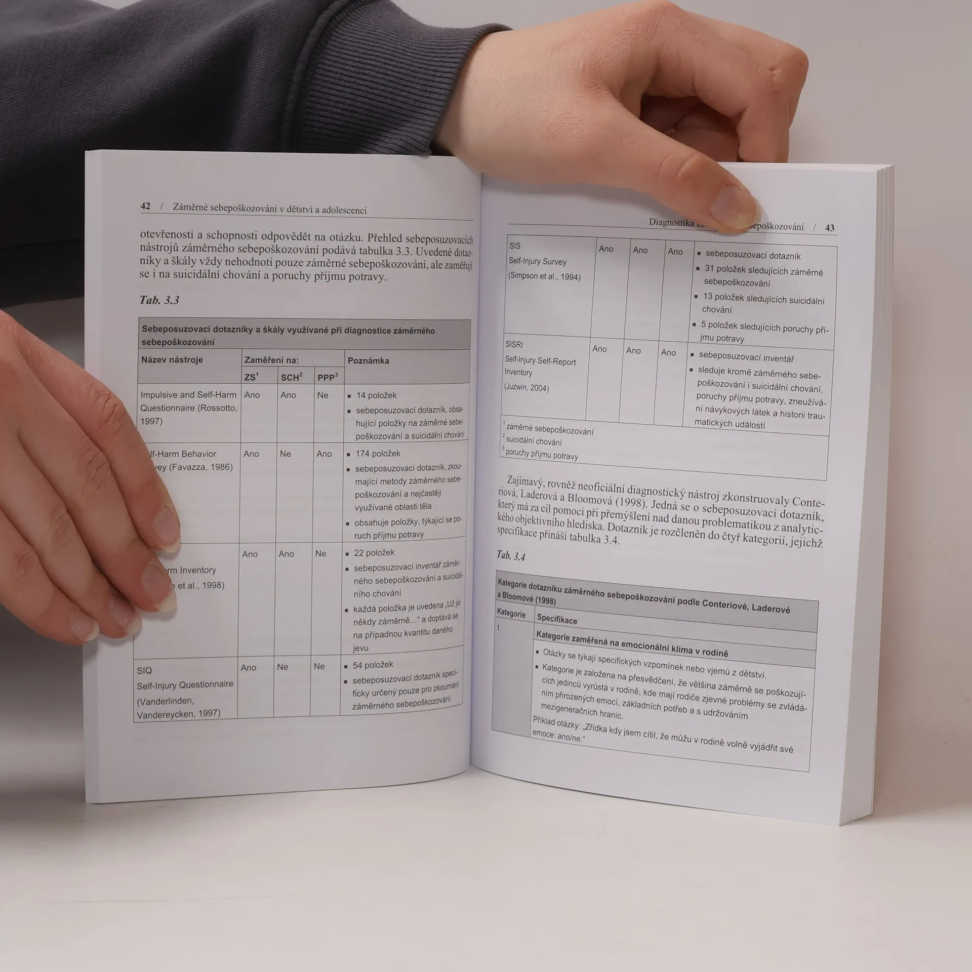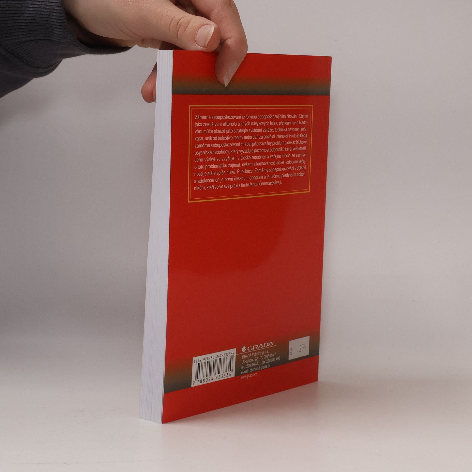 Monografie věnovaná problému sebepoškozujícího chování přináší výsledky zahraničních výzkumů a ucelené informace o příčinách, klasifikaci, projevech i léčbě této duševní poruchy. Publikace umožňuje základní orientaci v problematice. Autorka objasňuje terminologii, diagnostická kritéria, faktory vzniku problému, motivaci chování pacientů i terapeutické přístupy k léčbě. Vyhodnocuje a srovnává řadu zahraničních výzkumů. Odborný text je doplněn konkrétními případy z praxe. První česká práce věnovaná tomuto problému je určena zejména odborníkům.