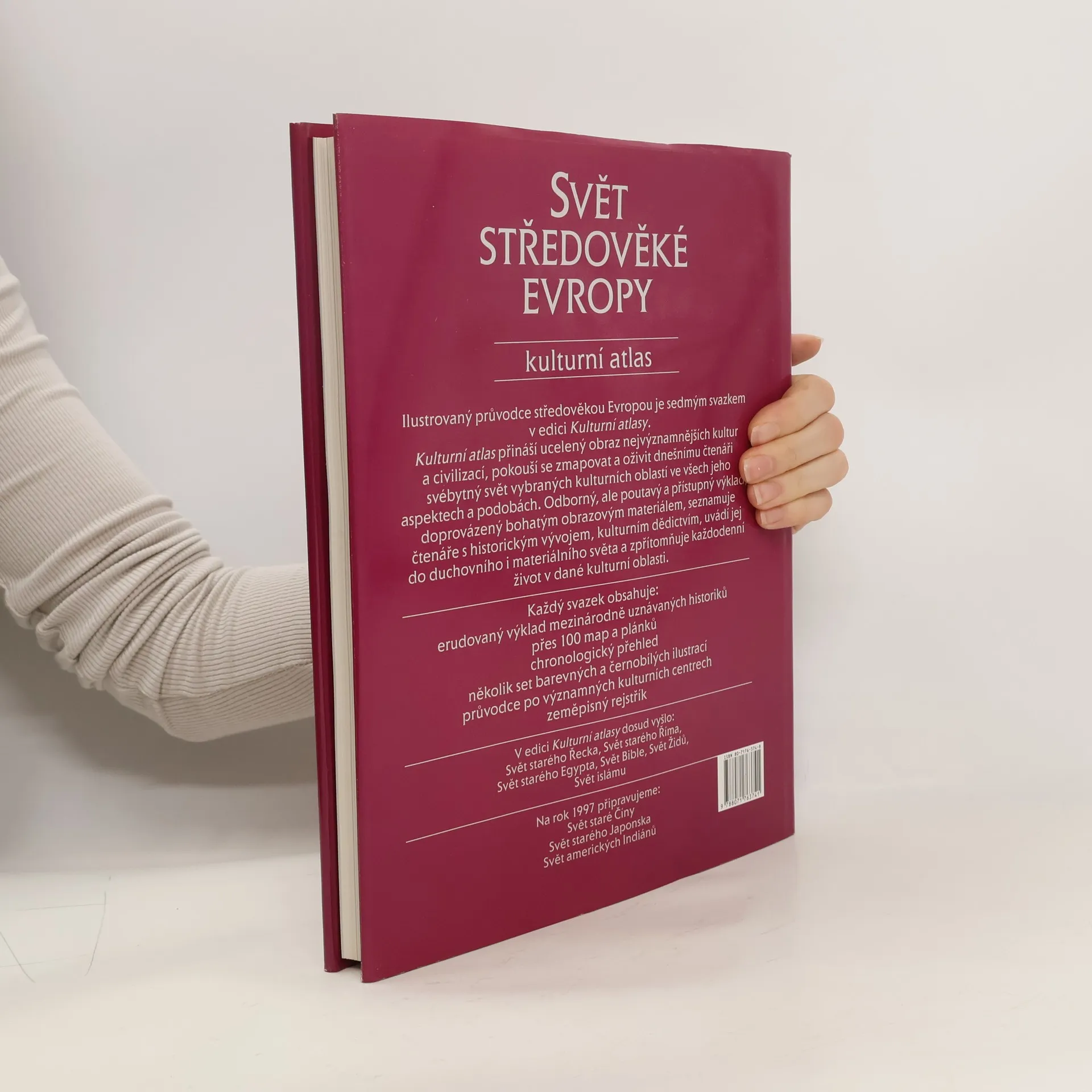 Tento atlas je přehledem evropské historie, kultury a společnosti v období od pádu římského císařství po objevení Ameriky koncem 15. století. Mapy zachycují postupné vytváření státních hranic až do současnosti, znázorňují stěhování národů, dobývání území, šíření křesťanství, vývoj v zemědělství. Pro jednoduchou orientaci je kulturní atlas doplněn chronologickými tabulkami, významovým slovníkem, bibliografií, zeměpisným slovníkem a rejstříkem.