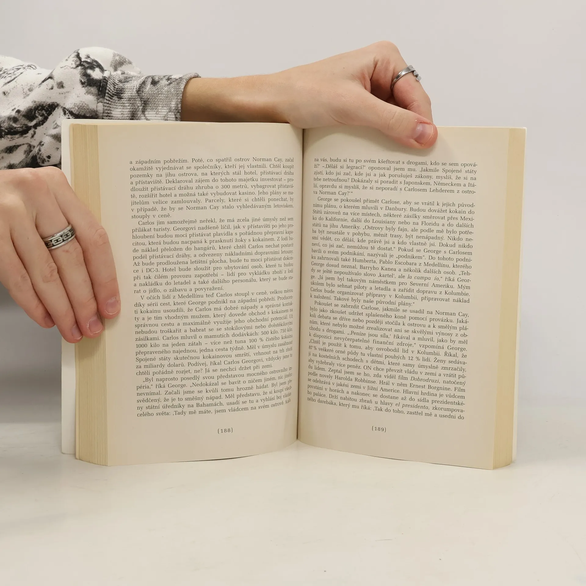 Kniha podává svědectví o životních osudech amerického obchodníka s drogami George Junga. Narodil se v roce 1942 v přímořském městečku Weymouth ve státě Massachusetts v celkem dobře situované rodině obchodníka s topnými oleji. Maloměstské prostředí nemohlo uspokojit ambice ctižádostivého mladého muže, a tak se vydává do Manhattan Beach v Kalifornii, kde se v 60. letech úspěšně zapojuje do obchodu s marihuanou. V touze po stále větším zisku získává drogu přímo od farmářů v Mexiku, odkud ji letecky přepravuje do USA. Rozhodujícím okamžikem jeho života se stává pobyt ve federální věznici v Danbury, kde se roku 1974 setkává s kolumbijským pašerákem a zlodějem aut Carlosem Lehderem. Po propuštění začínají realizovat společný plán na obchod s kokainem. Jung se stává spojkou Medellínského kokainového kartelu, poznává i jeho vůdčí osobnost Pabla Escobara. Výnosnou spolupráci ukončí až jejich zatčení v roce 1987, kdy svědčí proti svému příteli, aby mu byl snížen vlastní trest. Biografie amerického novináře, podle níž byl natočený film s Johnny Deppem, vznikla na základě výpovědí hlavního hrdiny, jeho rodinných příslušníků, přátel, agentů FBI a vychází také z policejních a soudních spisů. Autor nechává především vypovídat fakta, vyhýbá se komentářům a hodnotícím stanoviskům.