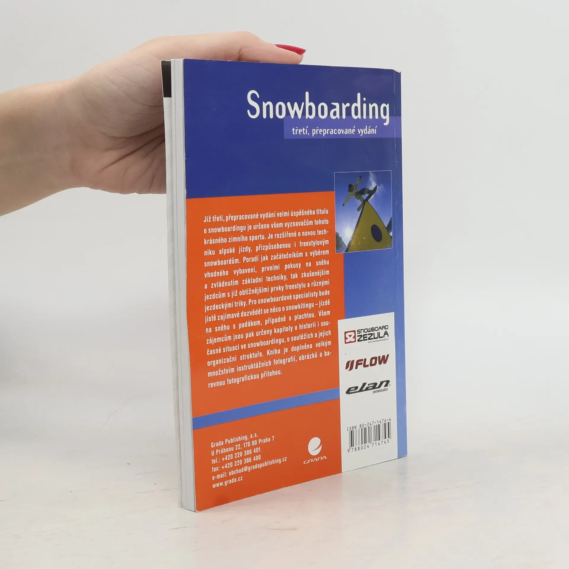 Již třetí přepracované vydání nejúspěšnějšího sportovního knižního titulu vydavatelství je doplněno o novou techniku alpské jízdy, která je přizpůsobena freestylovým snowboardům a jako první kniha přináší informace o snowkitingu, neboli o ježdění na snowboardu za padákem, či plachtou. Autoři, úspěšní snowboardoví závodníci a instruktoři, pojímají snowboarding jako životní styl a především jako sport pro volný čas. Hlavní část knihy autoři věnují technikám alpské jízdy i freestylu, poradí vám s výběrem vhodného "prkna" i ostatního sportovního vybavení a přinášejí nejnovější poznatky ze snowboardového světa. Z obsahu: Historie a současnost snowboardingu Jak začít Výzbroj Technika a metodika jízdy na snowboardu Věková specifika Snowboardové závody Bezpečnost na snowboardu Snowboarding s padákem či plachtou a snowboarding na písku Slovník základních pojmů... celý text