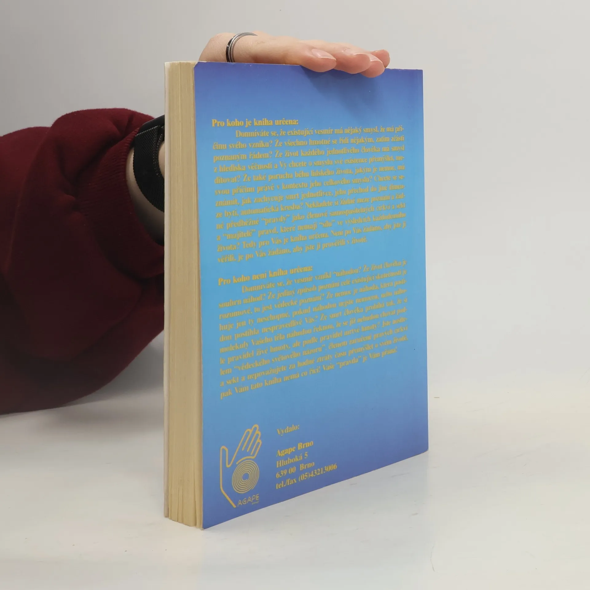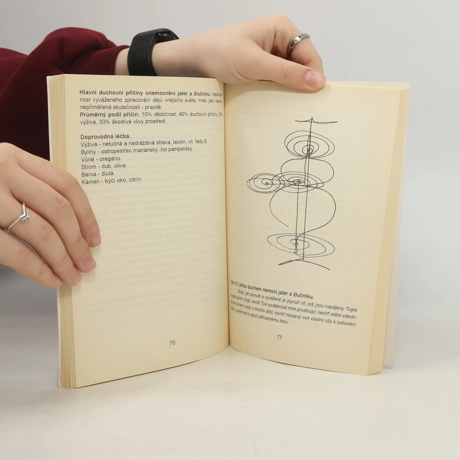 Současná medicína sice detailně popíše tělo člověka a průběh procesů nemocí, není však schopna odpovědět, proč člověk žije a proč je nemocen. Těmito otázkami se mohou zabývat jen ty obory, jejichž předmětem poznání jsou dimenze bytí, které byly ještě před vznikem hmotného. Tato dimenze je označována jako duchovní a základním způsobem jejího nazírání na veškeré dění je z hlediska věčnosti Knih, popisujících duchovní příčiny nemocí, je mnoho. Mnohé vyšly i u nás v překladu. Za nejlepší je možné jmenovat Dethlefsenovu „Nemoc jako cestu“ a Lazarevovu „Diagnostiku karmy“. Avšak žádná z těchto knih, které se ve světě a u nás tímto tématem zabývají, neobsahuje to, co obsahuje navíc tato kniha: praktický návod na východisko ze situace, to jest meditační modlitbu – mantru, zaměřenou na neutralizaci špatného duchovního směřování člověka, které zmíněnou nemoc vyvolalo. Tato mantra je vypsána vždy pod vyzařujícími obrázky, které jsou v knize uvedeny pro většinu hlavních nemocí. Její prožití a stálé opakování časem zneutralizuje v našem podvědomí i nadvědomí vlastní duchovní příčiny nemocí, nemoc přestane dostávat vadné impulsy ducha, špatný směr myšlení vyhasne. Nemoc se vyhojí v duši a následně i na těle. Metody léčení obrázky a meditační modlitbou se nijakým způsobem nekříží s tradiční medicínou. Je to rozšíření léčby o duchovní úroveň.... celý text
